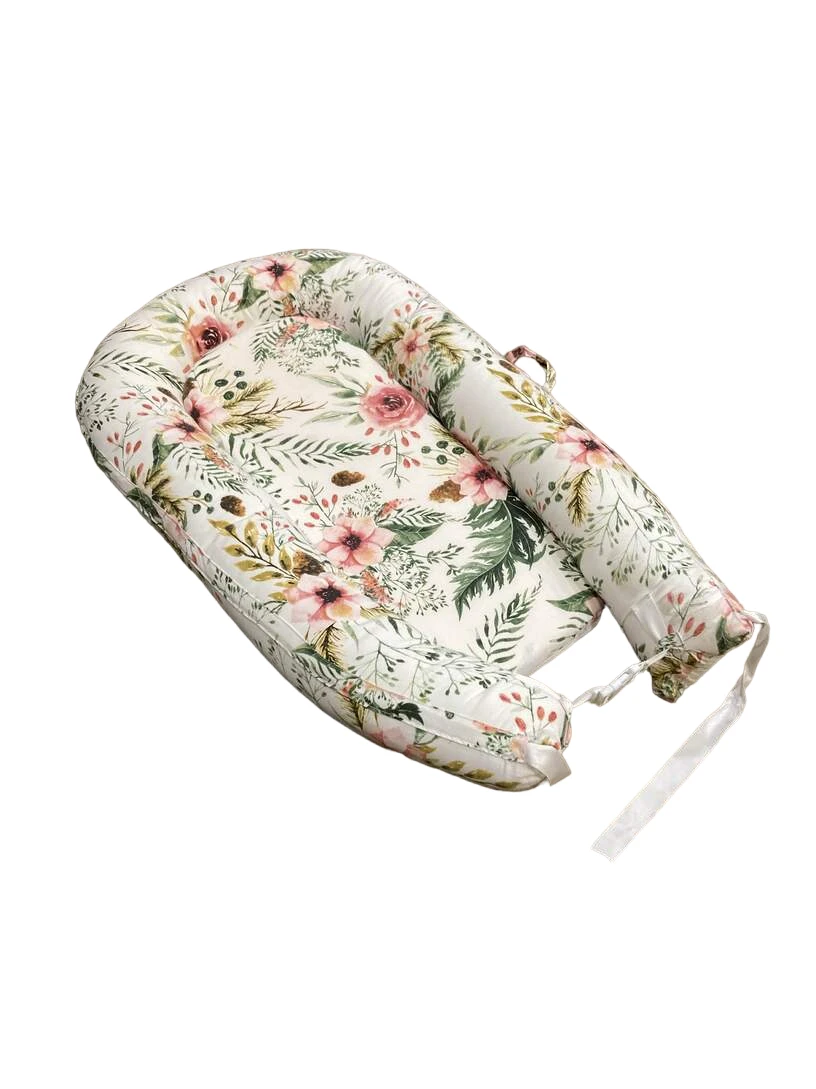 “Baby can lay comfortably on this adorable floral print pillow lounger with hypoallergenic cotton cover that is machine washable. Portable and travel friendly and great for tummy time!”