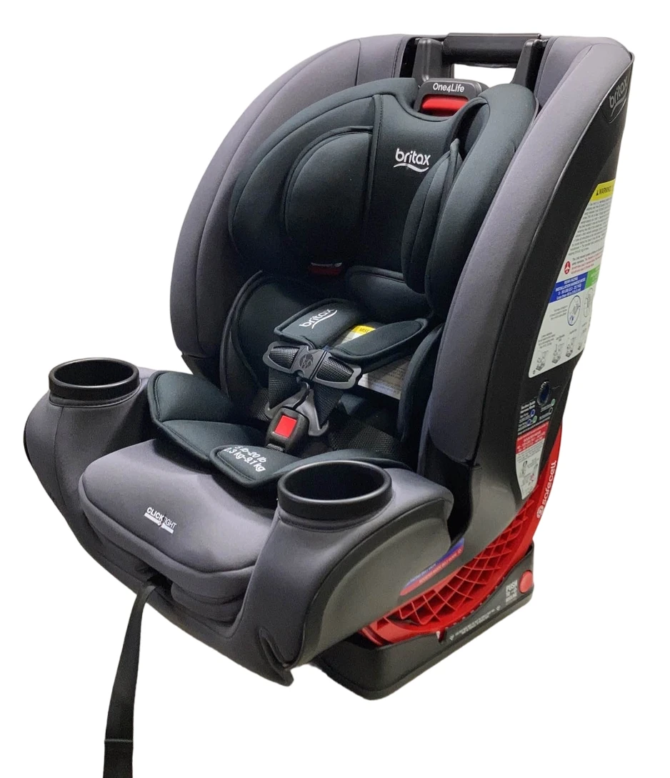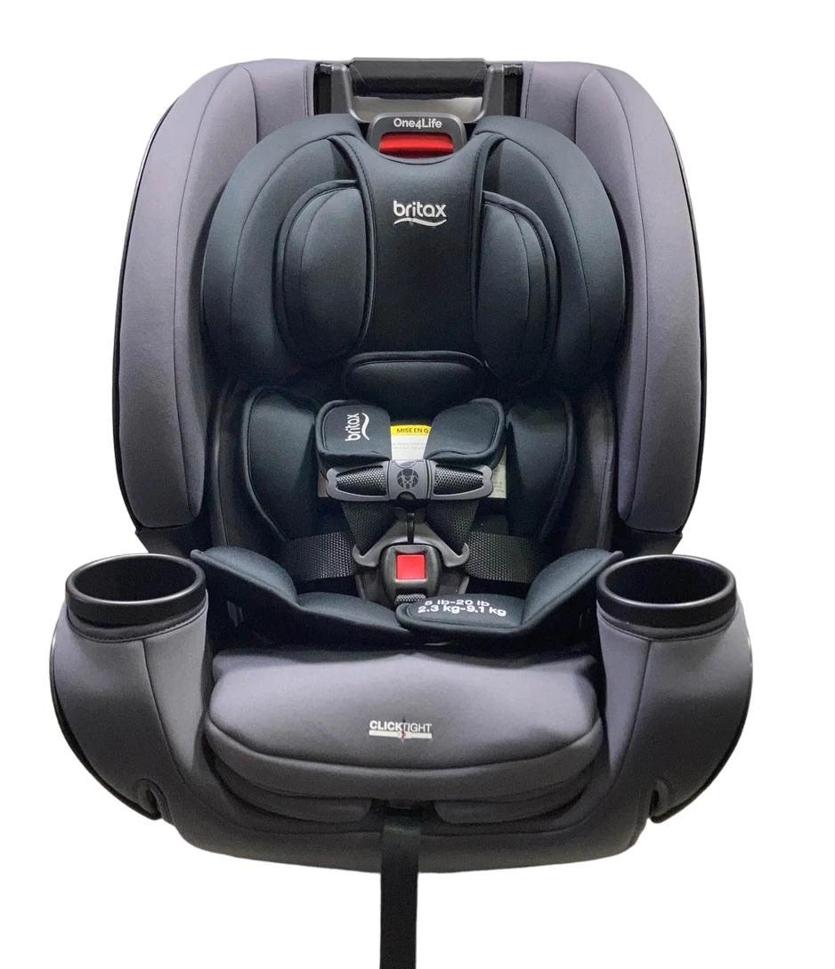 “One4life takes your child from birth to a big kid with Britax safety and ClickTight installation. It converts from a rear-facing infant car seat to a forward-facing 5-point harness to a high back belt-positioning booster seat. This seat functions rear facing for under 49″ in height and 5-50 pounds, forward facing 22-65 pounds, and belt positioning booster 40-120 pounds. Please note, we do not guarantee compatibility.”