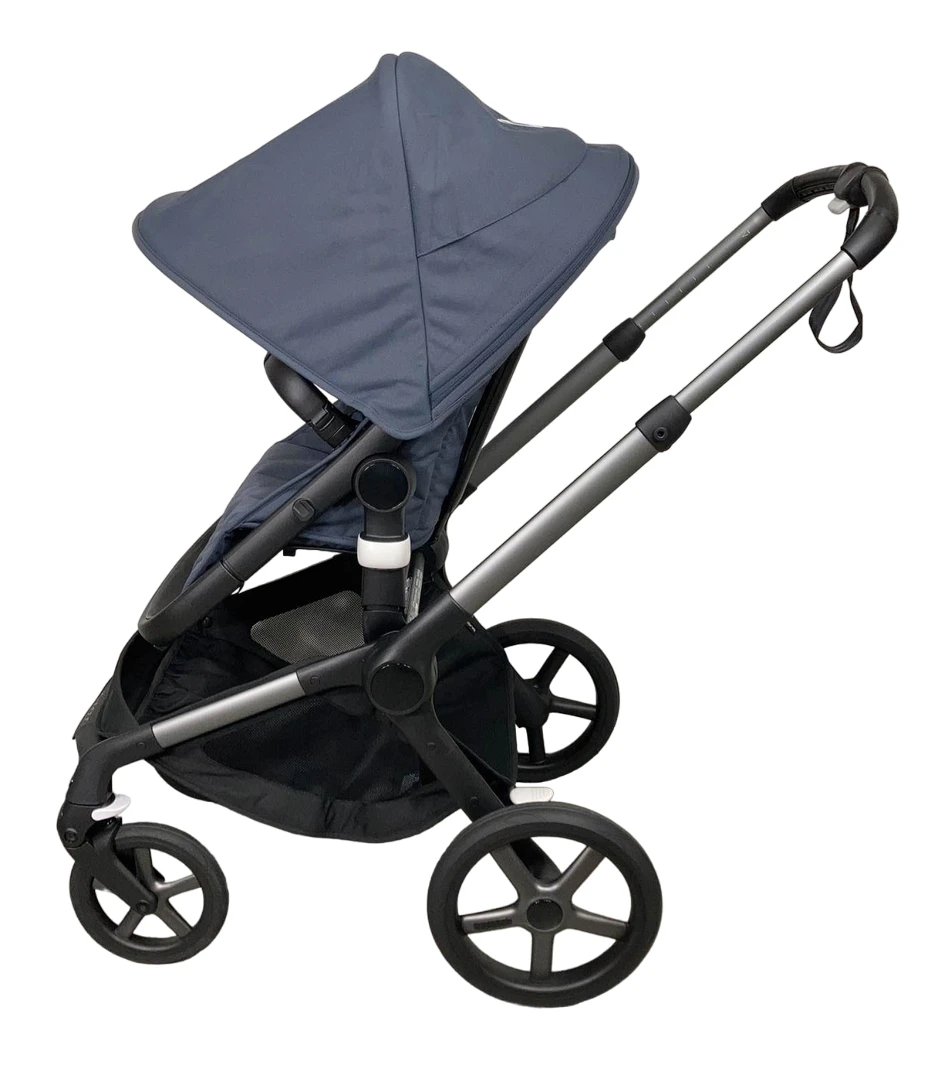 “Another great stroller from Bugaboo! Use one hand to fold and adjust. Stroller grows with your child with an extendable footrest and canopy. For up to 50 lbs.”