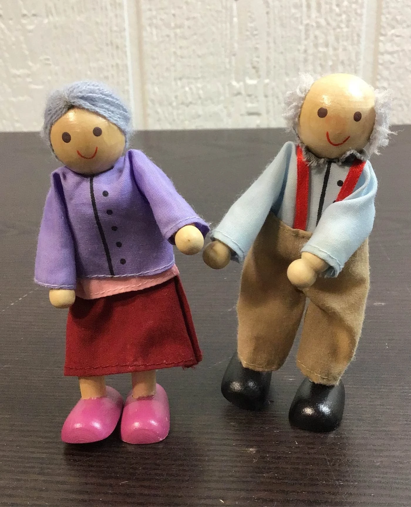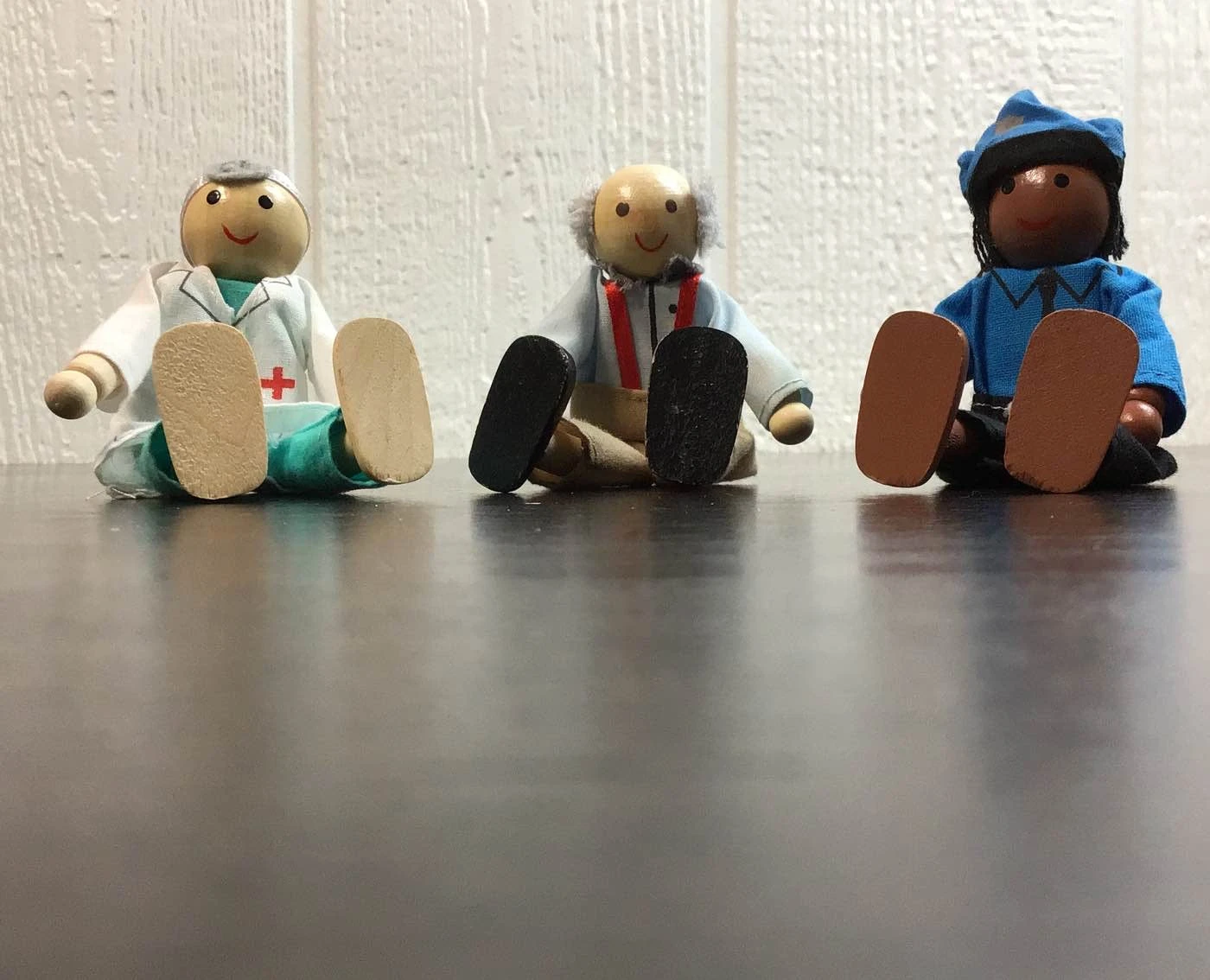 “Complete a dollhouse with this collection of classic wooden dolls.”