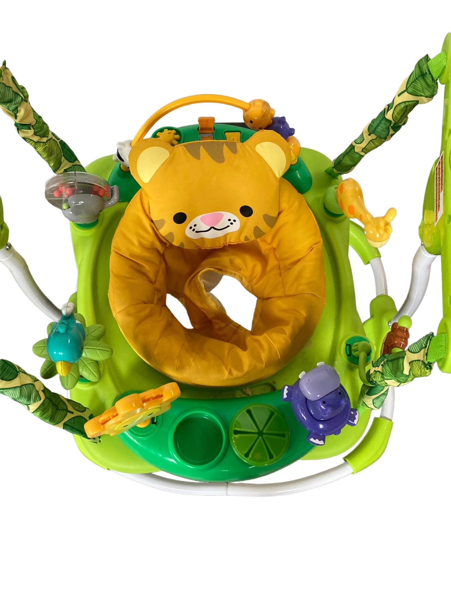 “This safari jumper is perfect for any little one looking for some fun! It comes complete with a snack tray, and a rotating seat that allows for 360 degree access to all the fun activities! “