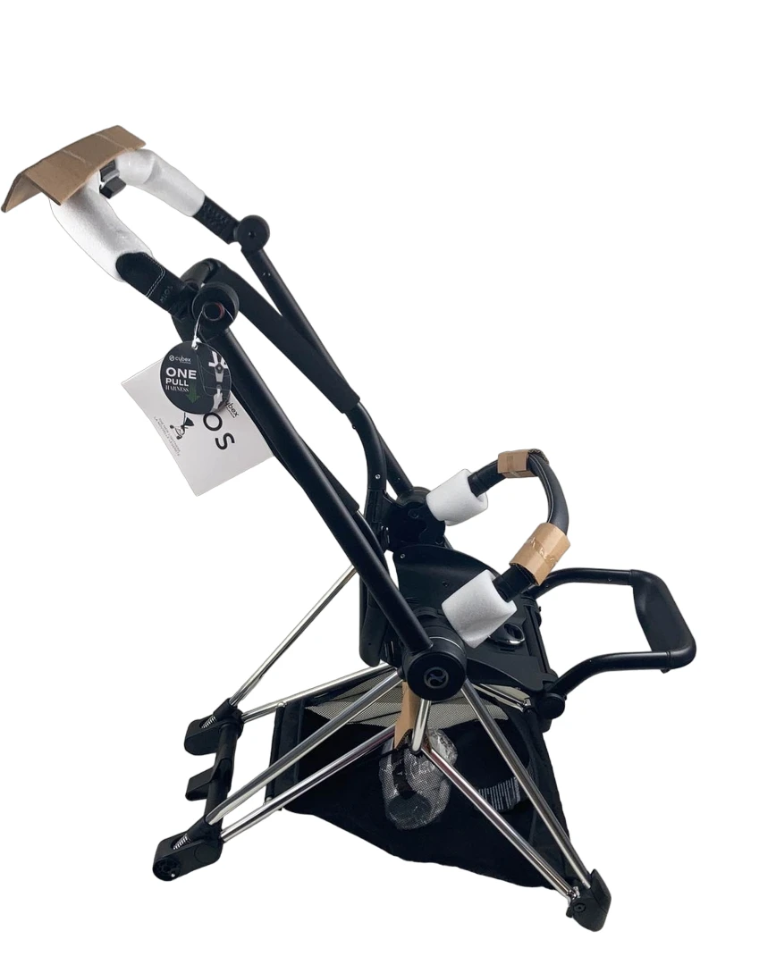 “Start with this frame, then customize the many Cybex Mios 2 seat and accessory options. (Sold Separately) The retro-modern Mios 2 stroller provides maximum stability in a lightweight frame. It’s the perfect companion for parents out and about. The folding mechanism transforms the MIOS into a compact, self-standing stroller in seconds, using only one hand!”