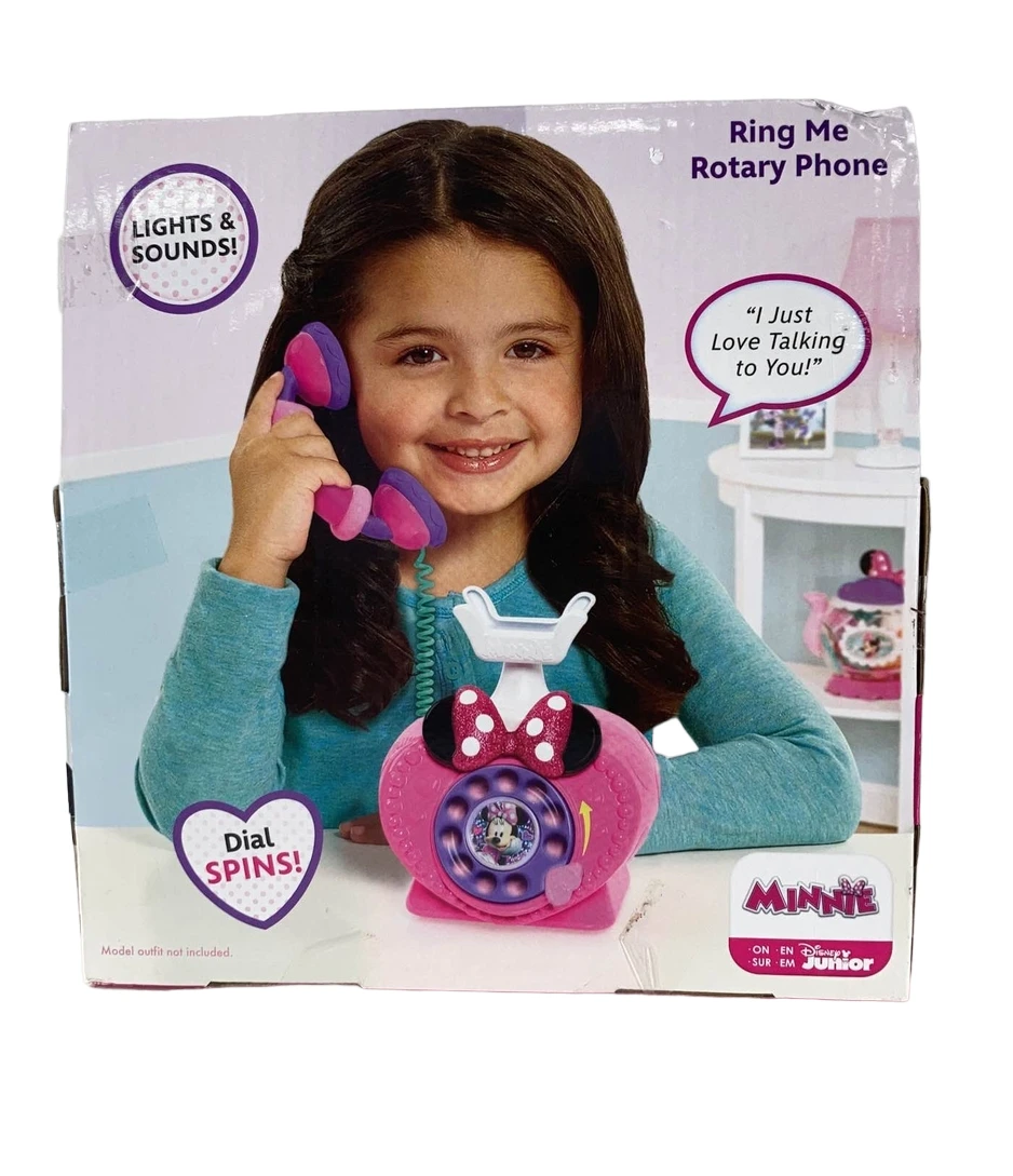 Disney Junior Minnie Mouse Ring Me Rotary Phone with Lights and Sounds, Pretend Play Phone for Kids, by Just Play,Multi-color,7.5 x 5.75 x 7.75 inches