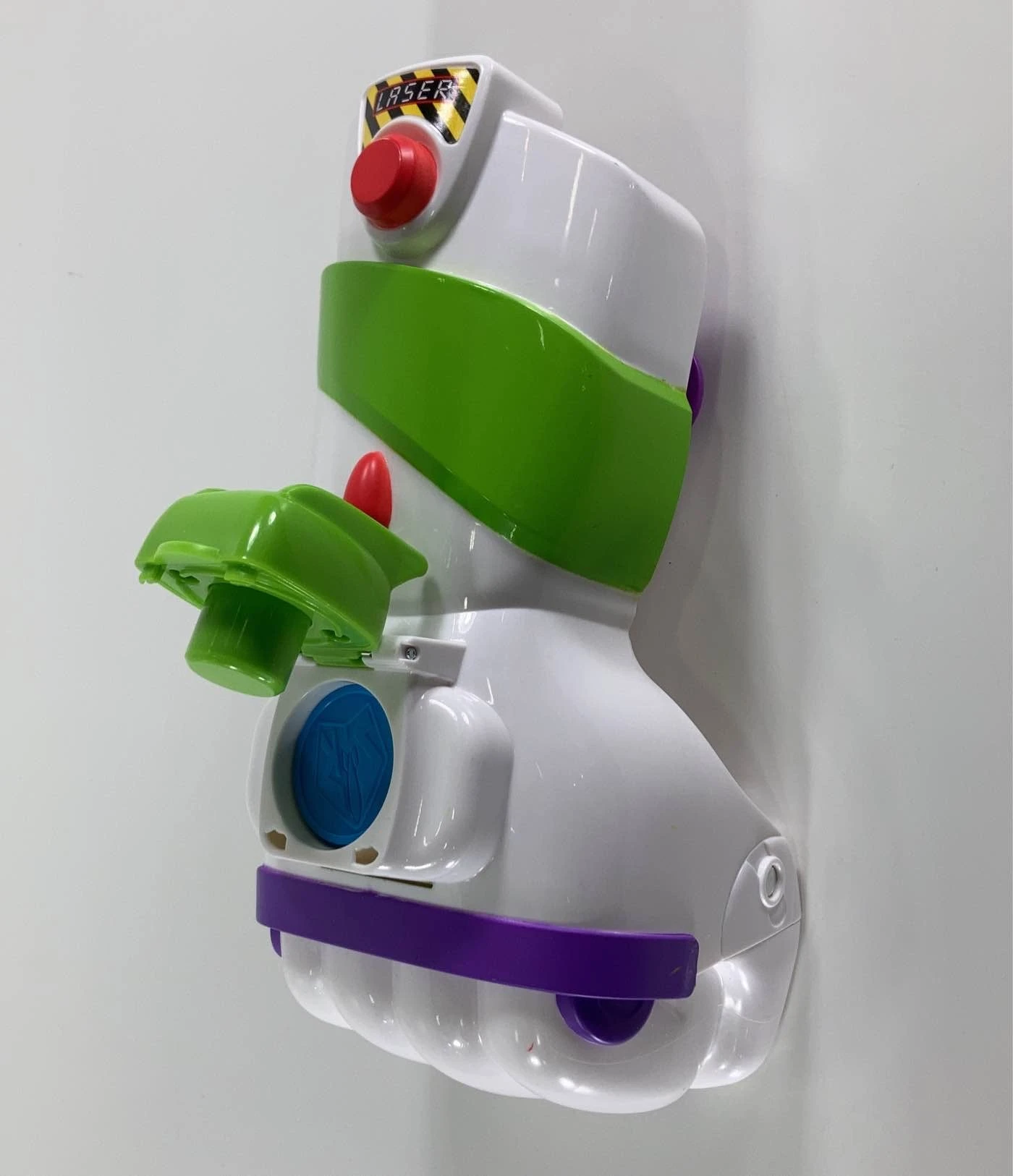 “Your kiddo can become Buzz Lightyear with this disc launcher! It has laser beam lights, sounds and blasts little discs into space. “