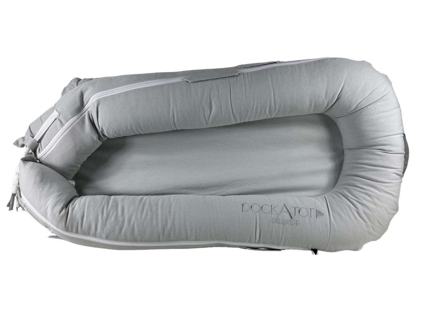 “Create a comforting womb-like environment for your baby with this multi-award winning Scandinavian baby dock. The raised sides gently hug your baby, making them feel snug and secure. Itβs the perfect place for lounging, playing, and tummy time. Made in Europe from hypoallergenic and phthalate free materials. For ages 0-8 months. (The Deluxe Dock does not have additional loops on the side which will hold the Toy Arch.) This item is not safe for sleep.”