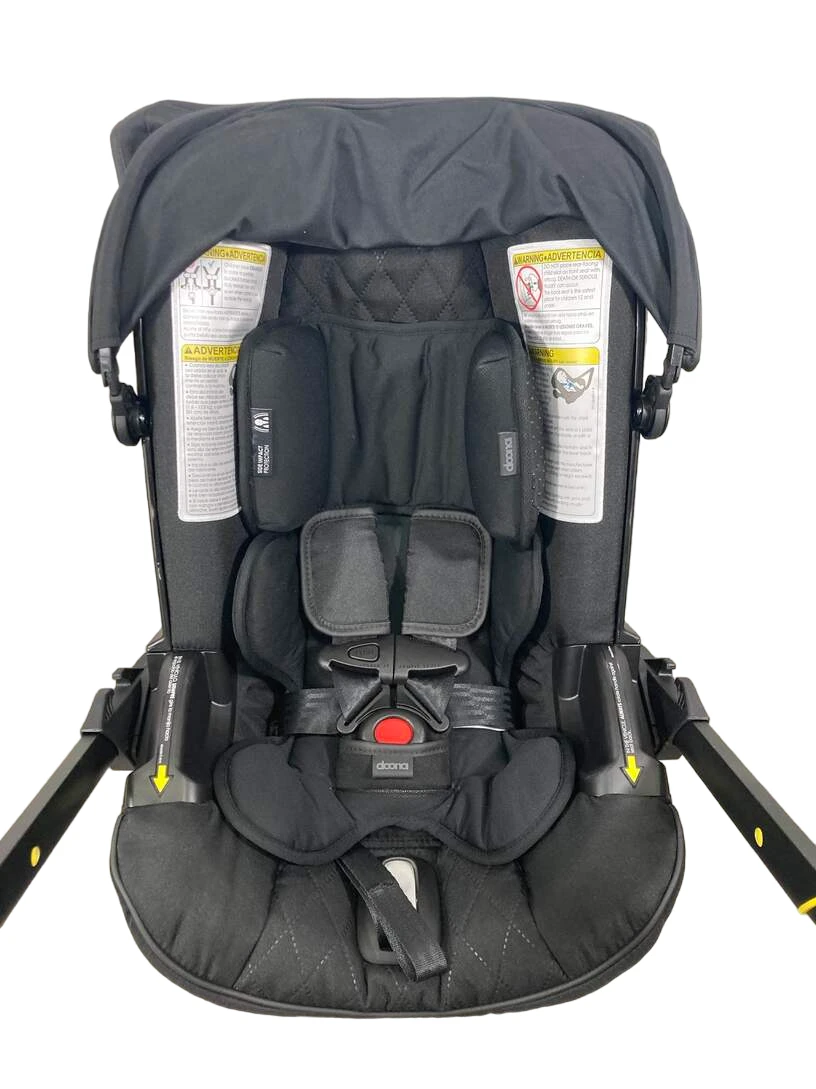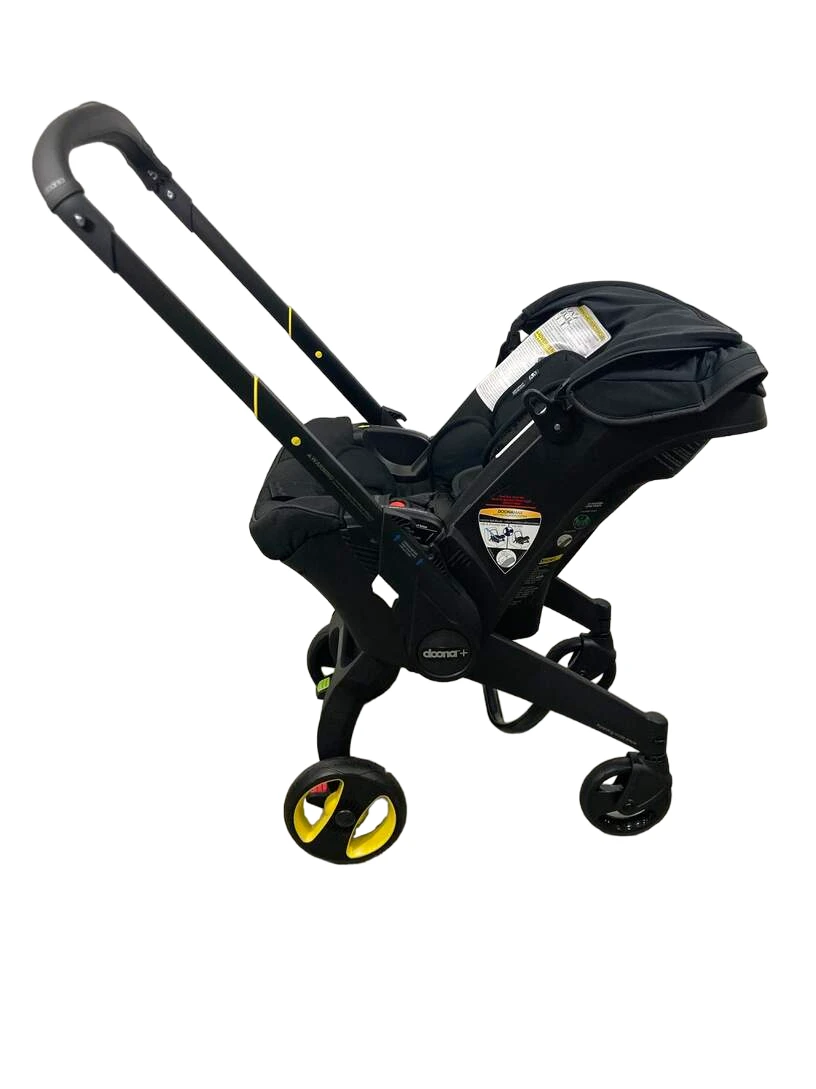 “This Doona stroller is the first completely built in system of its kind, making it seamless to travel from the car to around town making it ideal for the city! This innovative system transitions from carseat to stroller in minutes, has an adjustable handlebar, removable/washable covers, and a 5 point harness. This stroller combination is made for 4 to 35 lbs. and is suitable for FAA air travel. The Vacation Edition has all the extra features for parents like vegan leather handlebars and accessories. Parents think this stroller is a dream and only makes life easier! This edition includes an exclusive complimentary Doona Midnight Essentials Bag and a luxurious black faux-leather Handlebar Cover. Please note, we do not guarantee compatibility.”