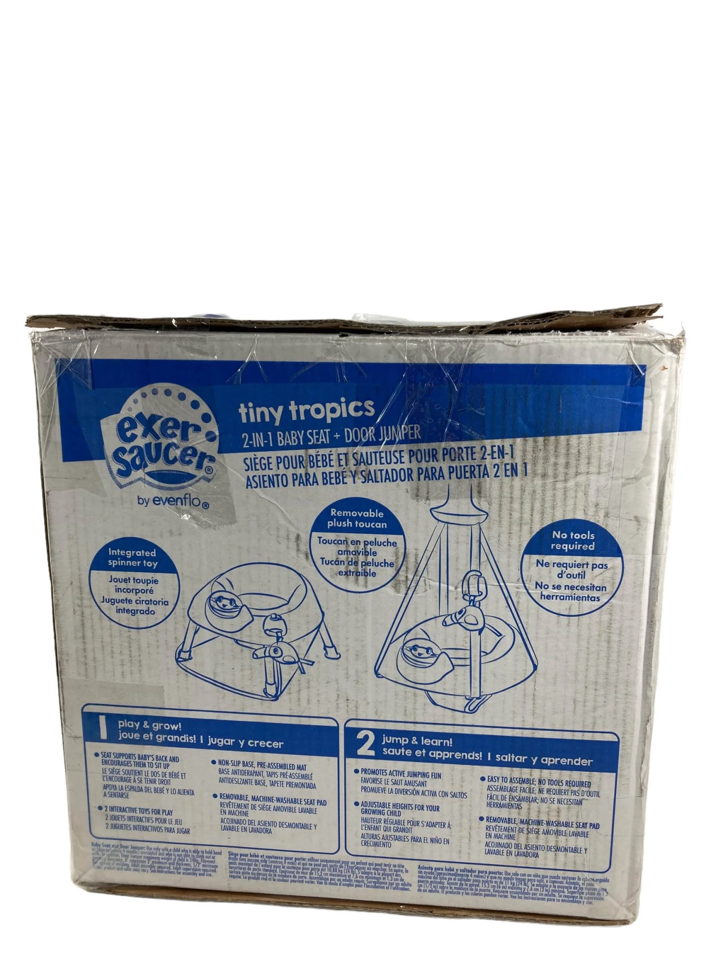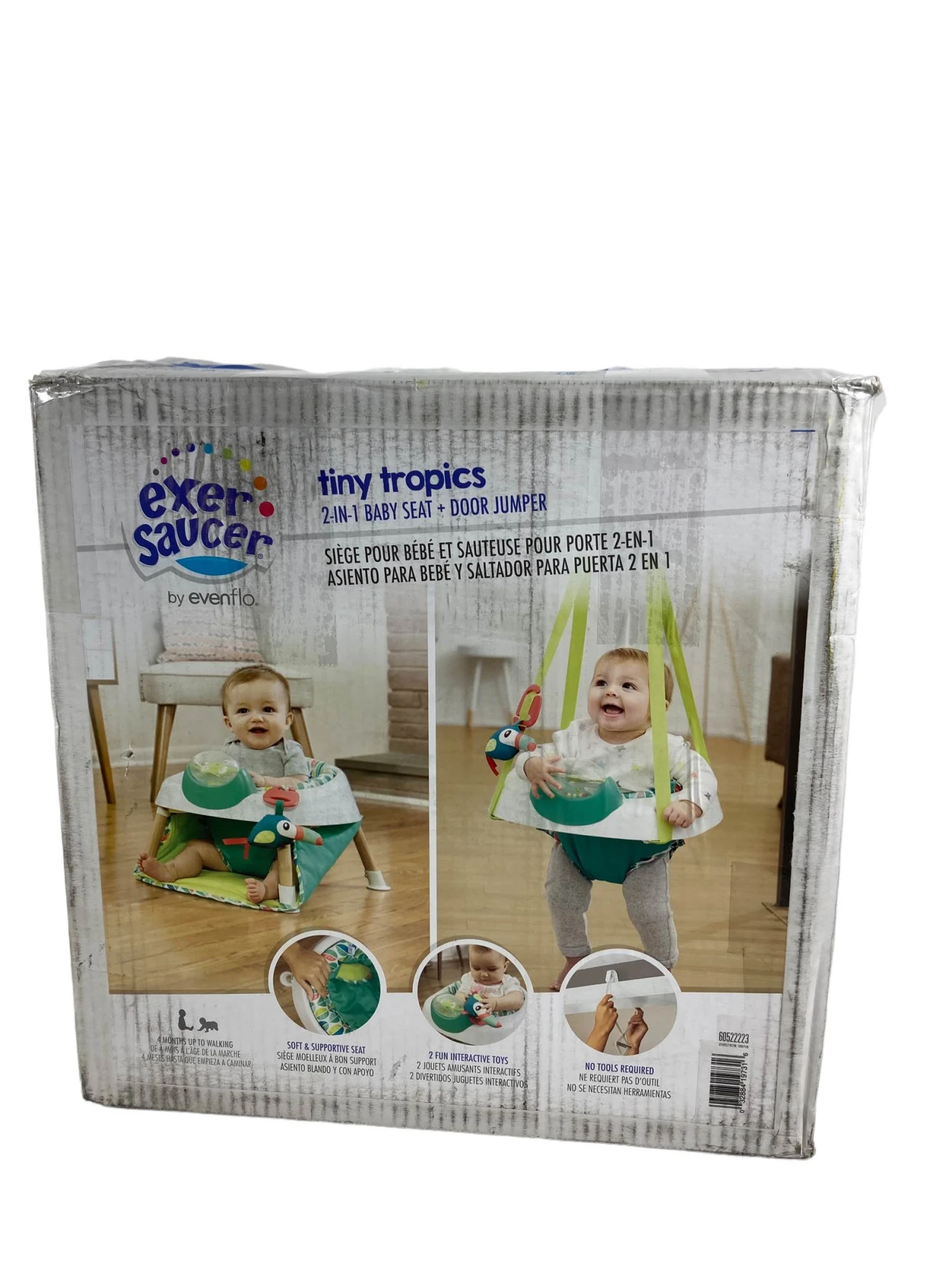 “This portable infant seat provides tons of fun and exercise for baby, but doesn’t take up a lot of floor space. It can be used as a floor seat with activities or as a doorway jumper. The sturdy door frame clamp provides a secure fit to interior doorways. The framed seat fully surrounds your child. Adjustable straps allow you to accommodate a baby’s changing height and weight, and the included toy loop is a perfect place to clip on your child’s favorite toy. Holds up to 24 pounds. Recommended age 4 months and up. “
