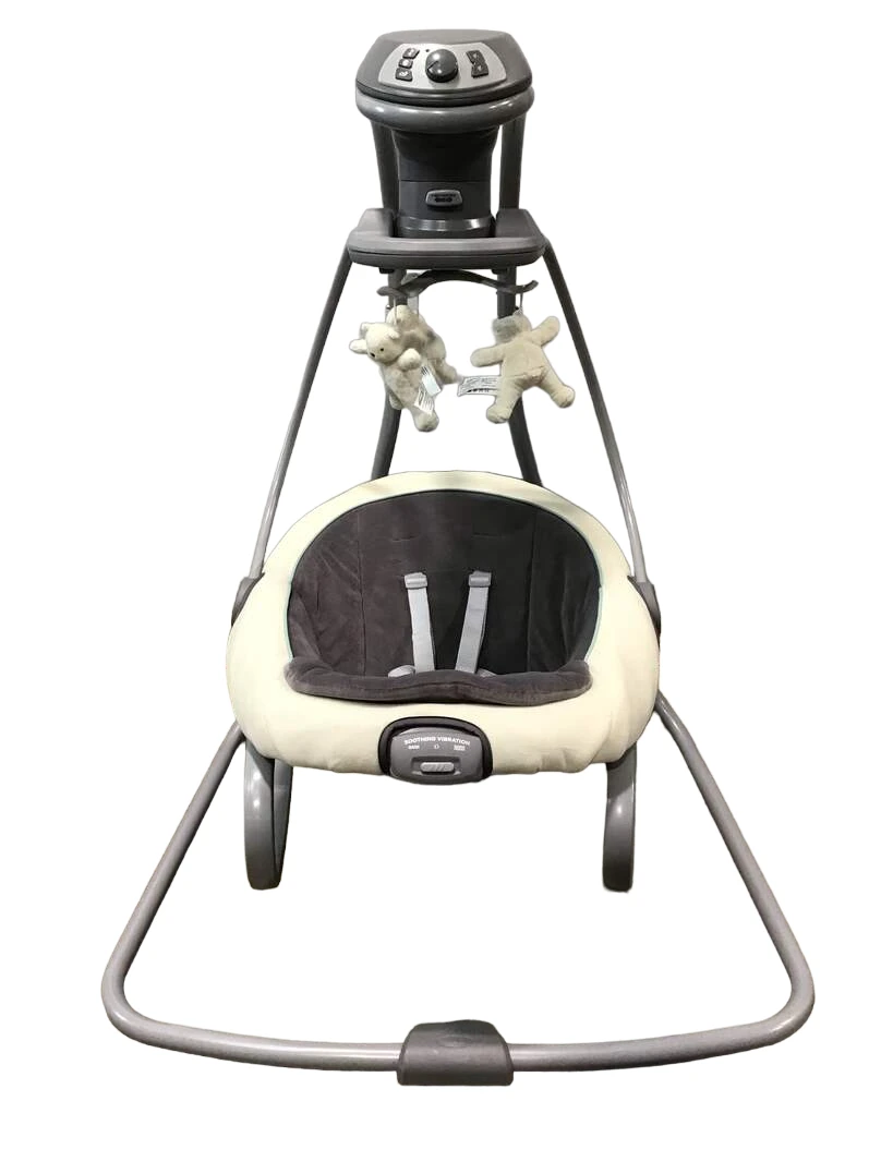 “This has a removable swing seat that doubles as a bouncer, so you’ll have two great ways to soothe your little one.”