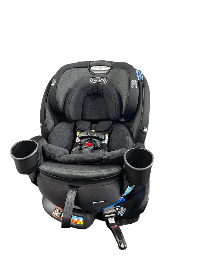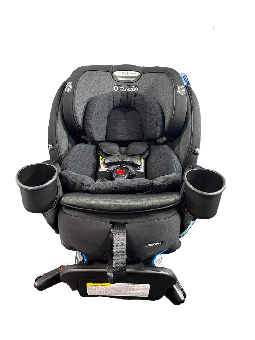 “The Graco Turn2Me 3-in-1 Rotating Car Seat makes it easy to get your baby in and out with its one-handed rotation. It provides three modes of use: rear-facing (4-40 lbs, head must be at least 1″ below headrest adjustment handle), forward-facing (22-65 lbs, up to 49″), and highback booster (40-100 lbs, 43-57″). Its SnugLock technology and Simply Safe Adjust Harness System make installation fast and easy, with 10 headrest height positions. It’s a safe and comfortable ride for your little one. Please note, we do not guarantee compatibility.”