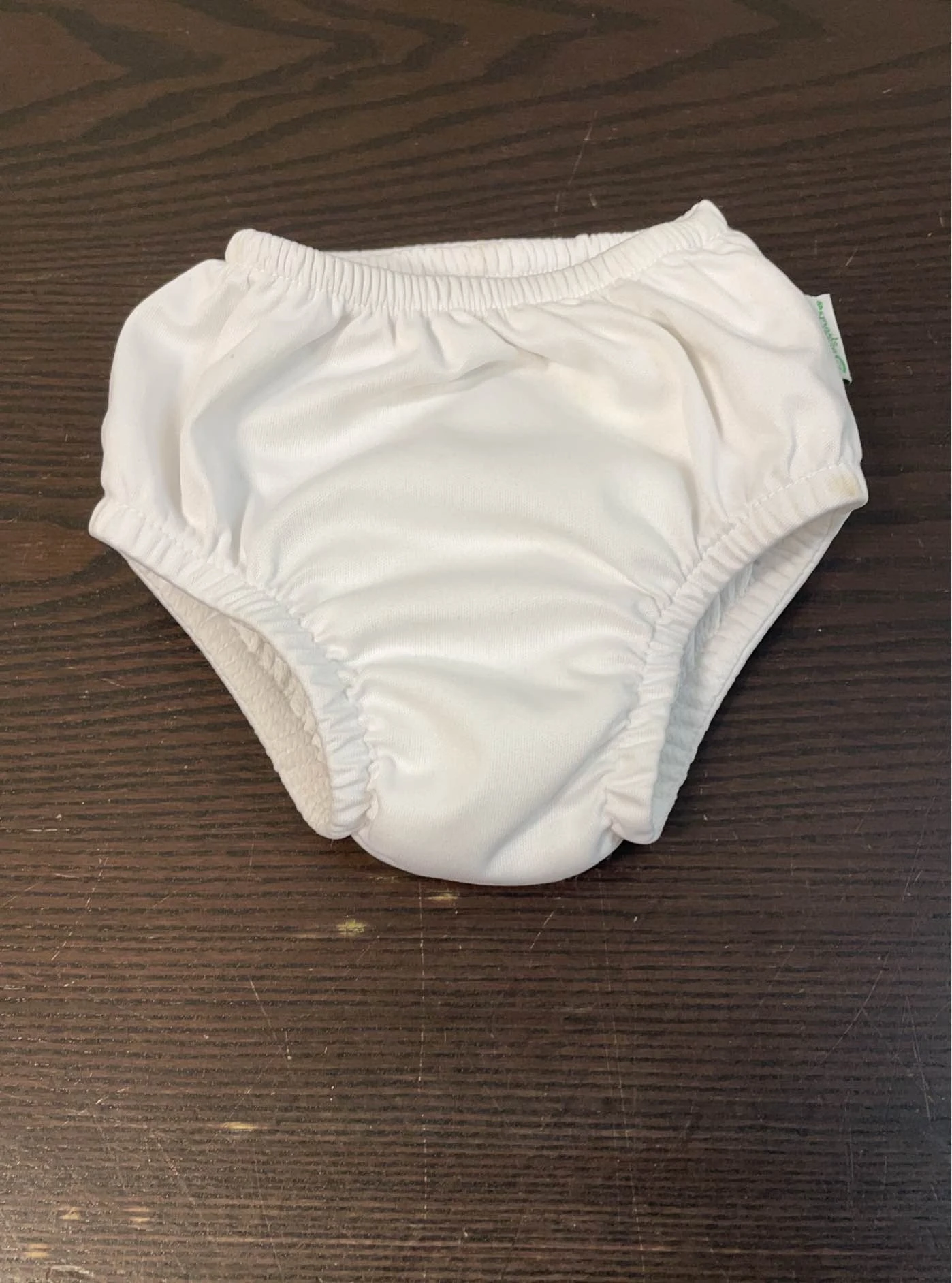 “Add these fun reusable diapers to your next swim adventure. 6 mos. 10 to 18 lbs.”
