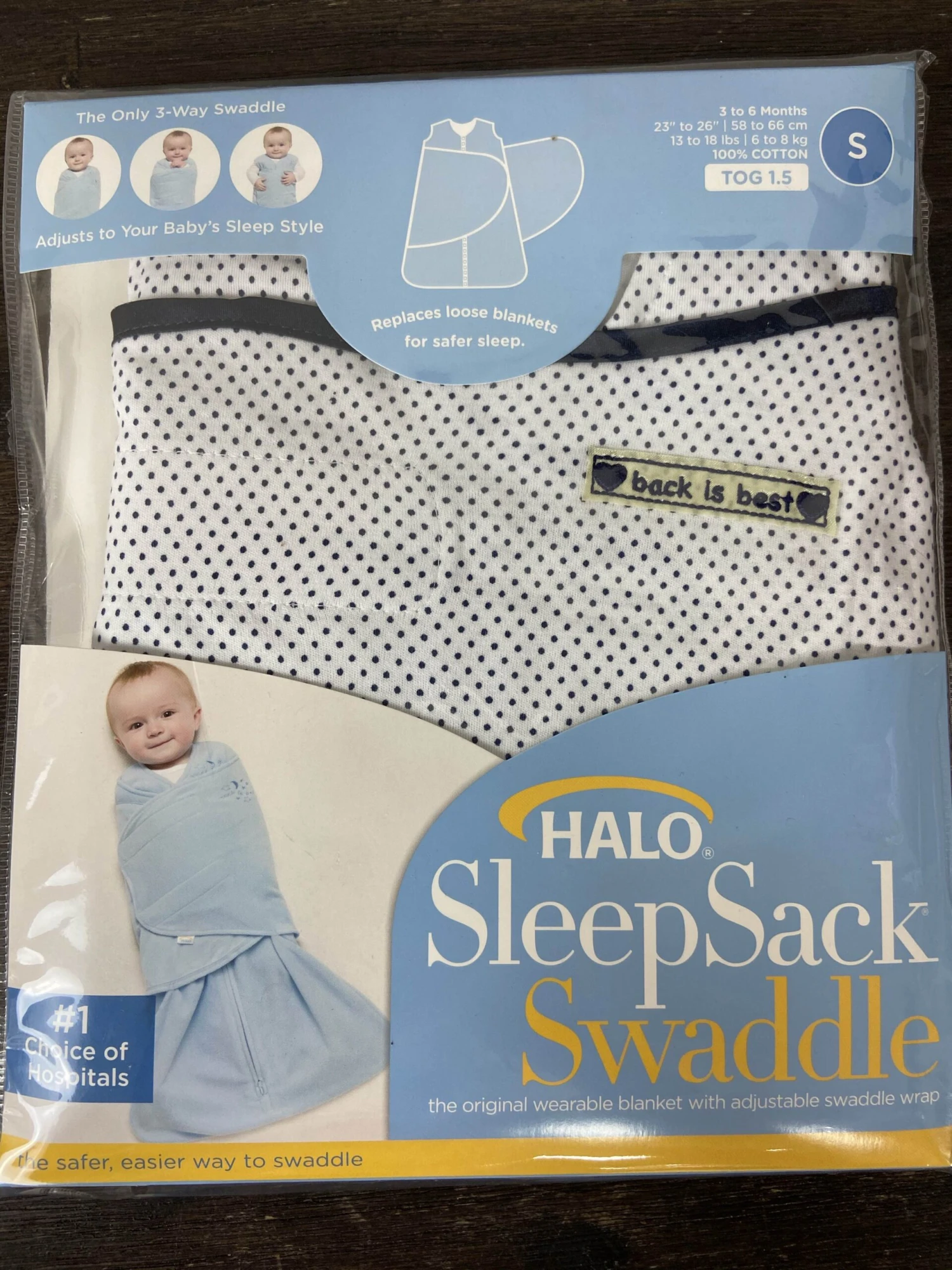 “These popular swaddles help keep your baby snug, safe and comfy. They are easy to use and recommended until your baby can roll over.”