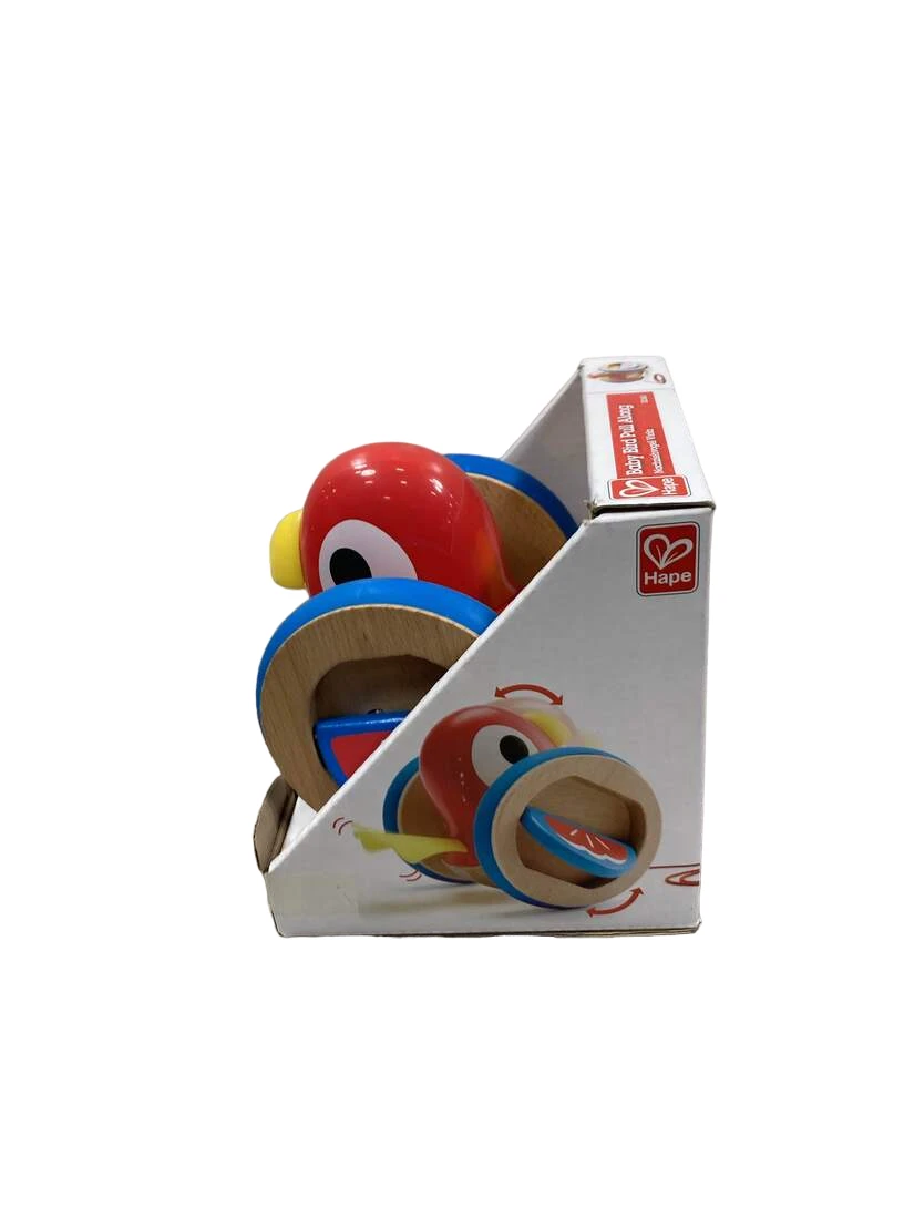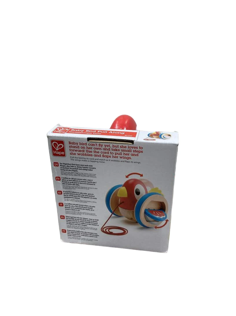 “Your kiddo will love pulling this sturdy wooden bird toy that flaps her wings when pulled!”