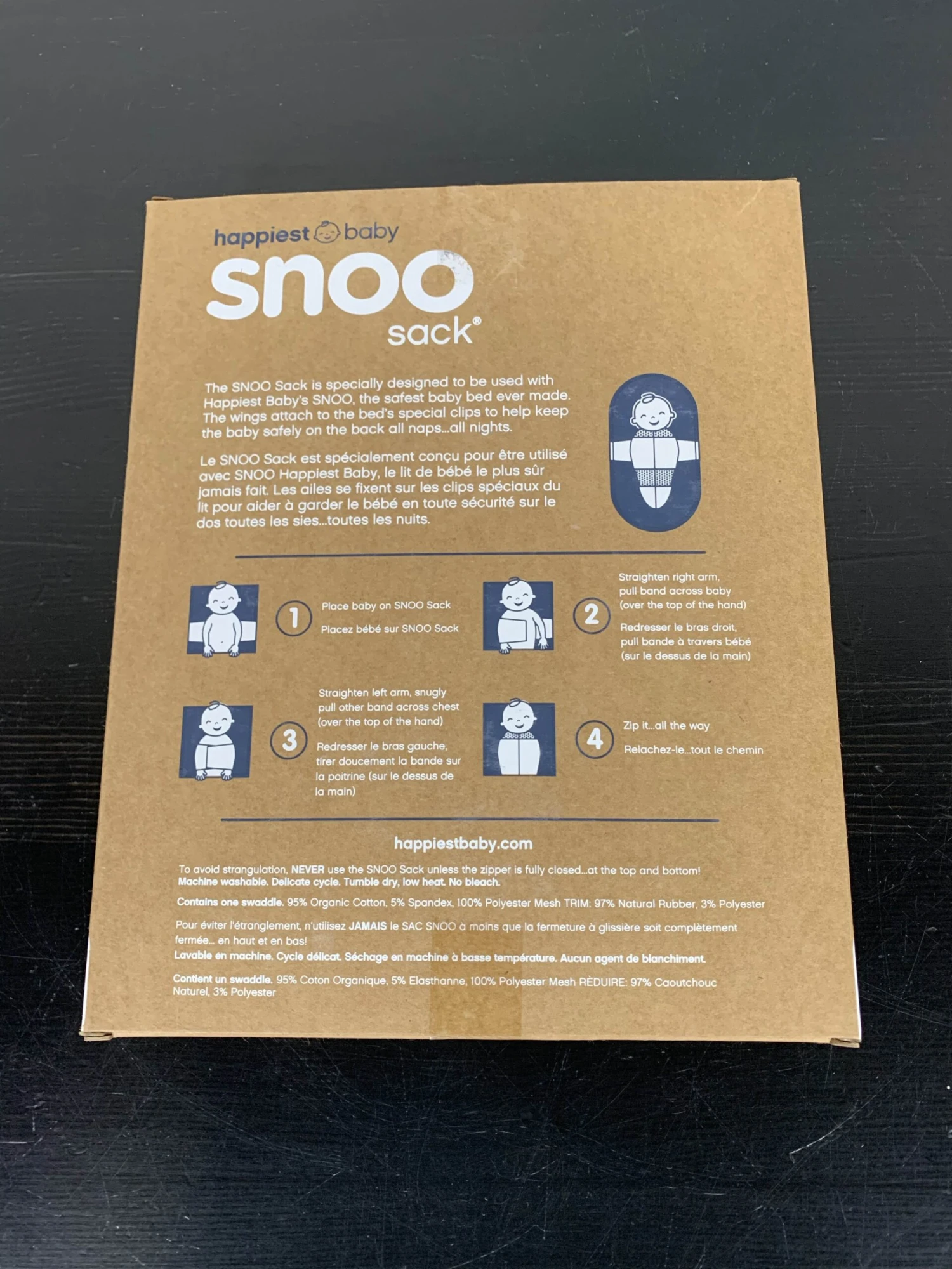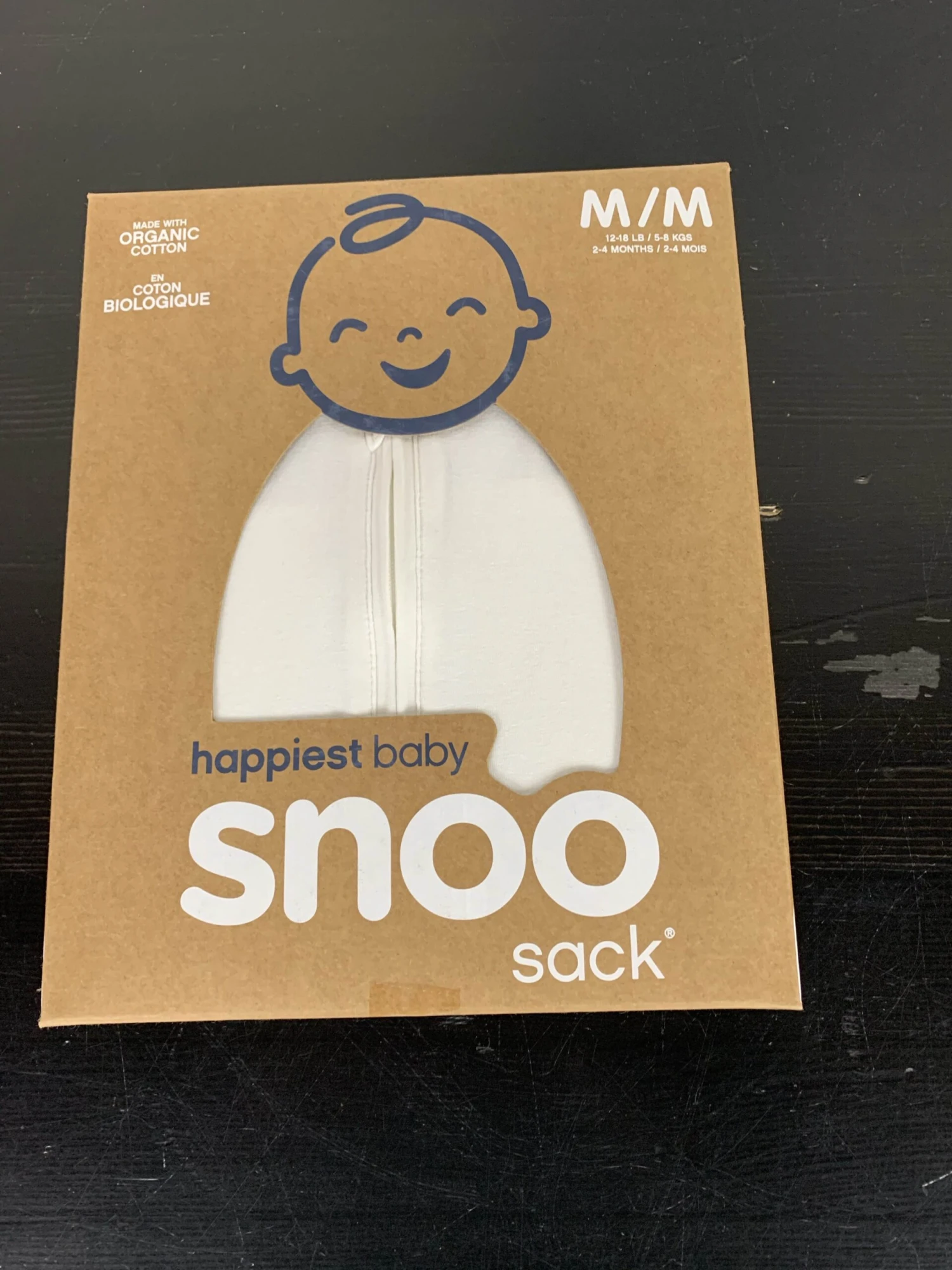 “This soft organic swaddle is specifically designed to work with the SNOO bassinet. The wings attach to the bed’s clips to keep baby snug and safe on their back all night long. This sleep sack is size medium and designed for 12-18 pounds.”