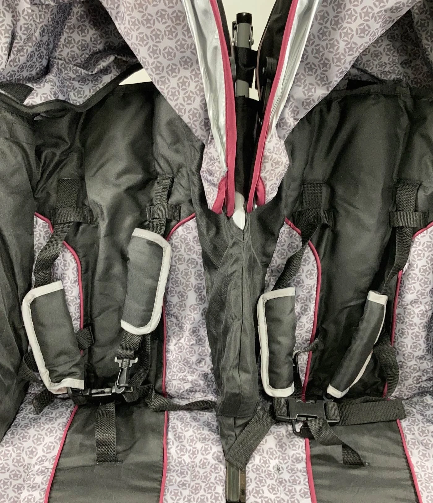 “This lightweight and a compact double stroller is a great option for travel or quick trips out with two little ones. It fits easily through doorways and features reclining seats for naps on the go.”