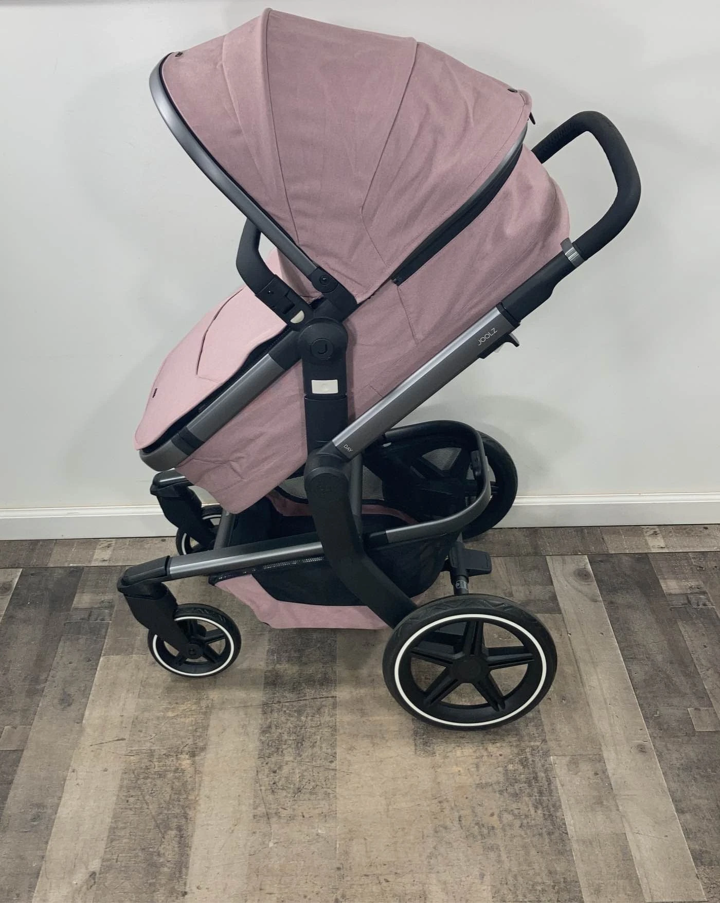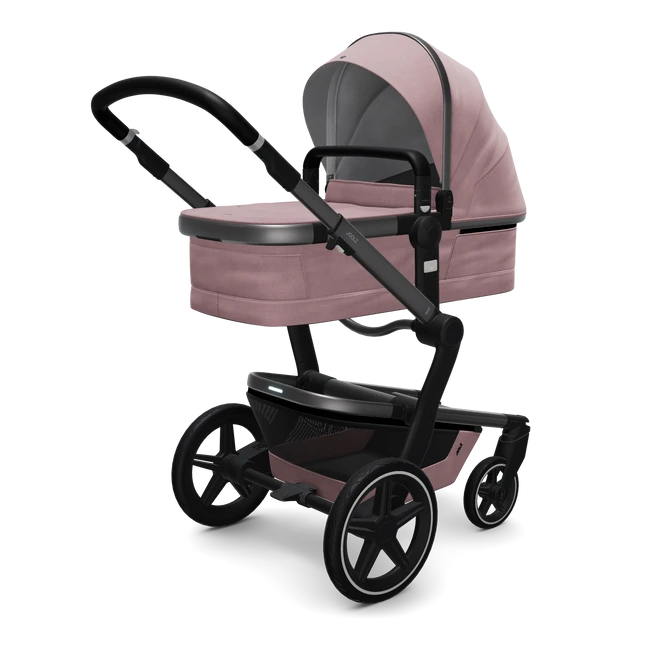 “Let your baby ride around in style in this easy to use high quality stroller. It features a reclining seat with the ability to lie completely flat, large mesh storage basket with a light on the back, smooth ride, and large sun canopy with extended shade. Includes a bassinet, which allows use from birth. Once the bassinet is outgrown, just change it out for the seat and you are on your way through preschool! The beautiful leatherette handlebar and toy bar combined with the silver frame, bring high quality design and durability.”