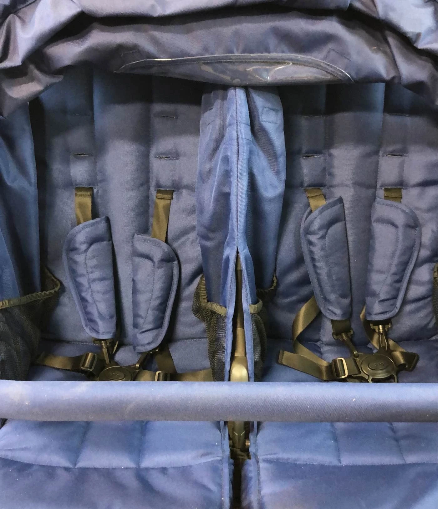 “This lightweight side-by-side double stroller is narrow enough to fit through standard doorways! Features independently reclining adjustable side-by-side seats, a one-handed, flat fold, parent organizers with 2 zippered pockets and 2 beverage holders, a humongous storage basket and an oversized sun canopy. “