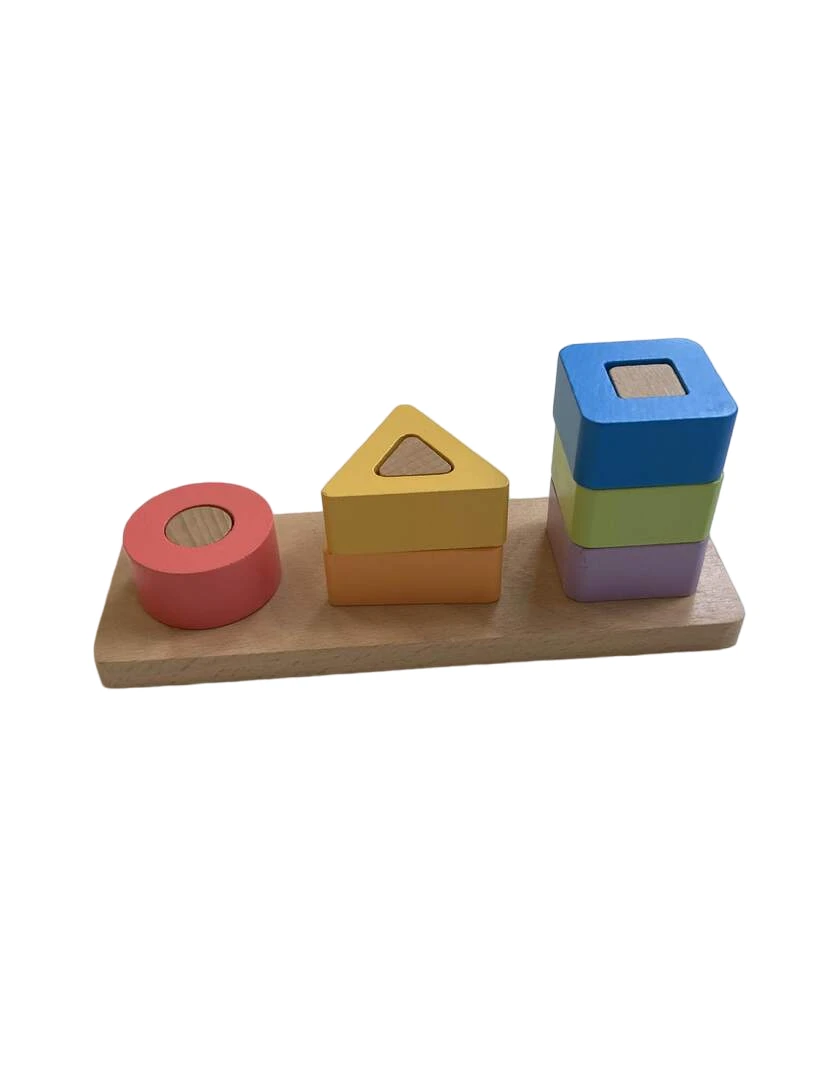 “A sturdy wooden toy to support your kiddo with stacking and sorting!”