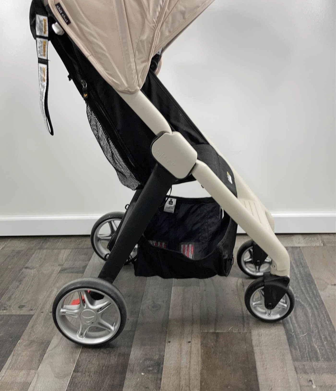 “The Chit Chat is a high-quality, lightweight stroller that is wonderful for children 6 months up to 55lbs. It features easy maneuverability, easily opens with just one hand, and folds up small for easy storage. The storage basket under the seat has plenty of room to hold all of the necessities you have along for the ride, and the cup holder for parents is certainly a plus!