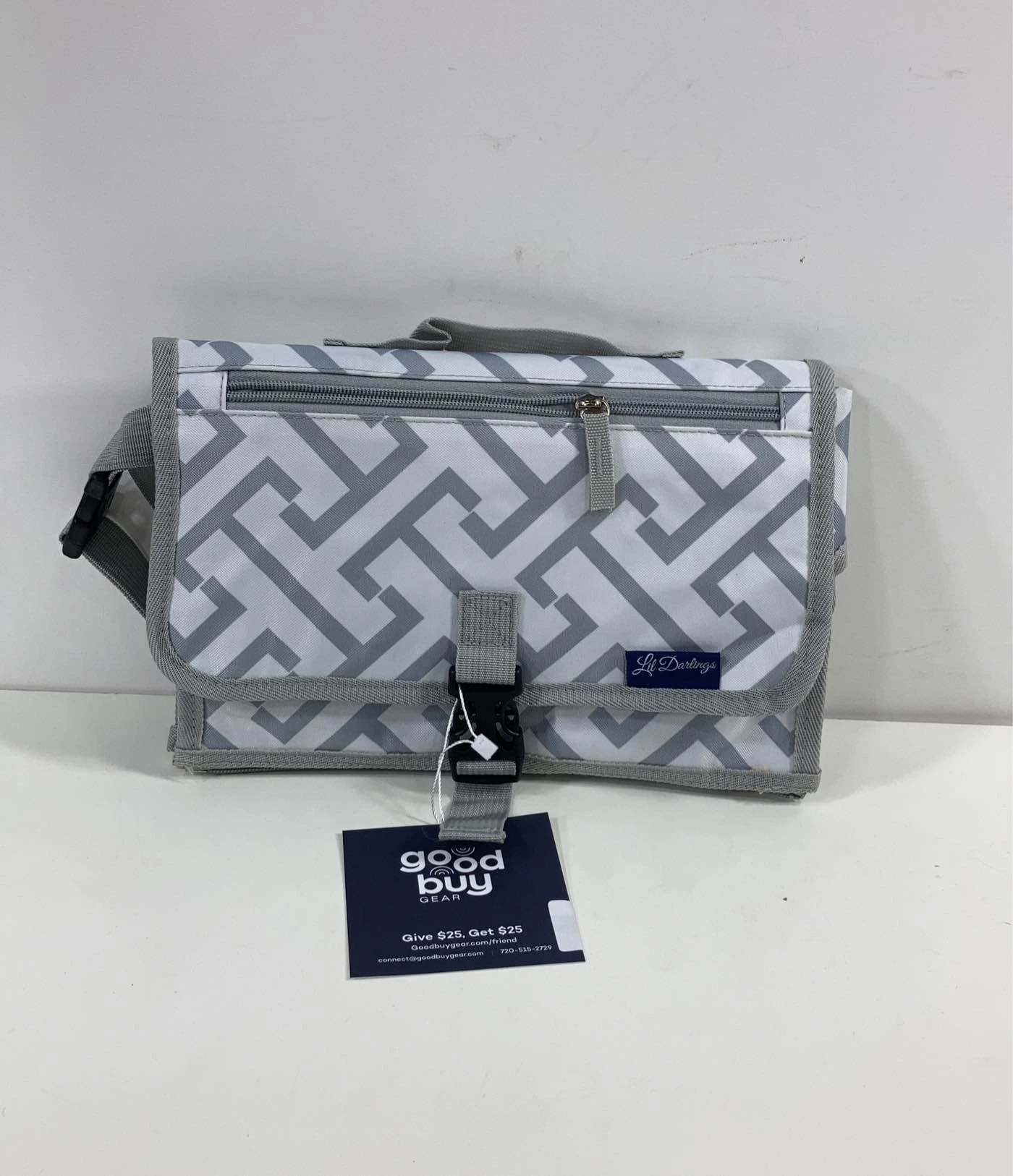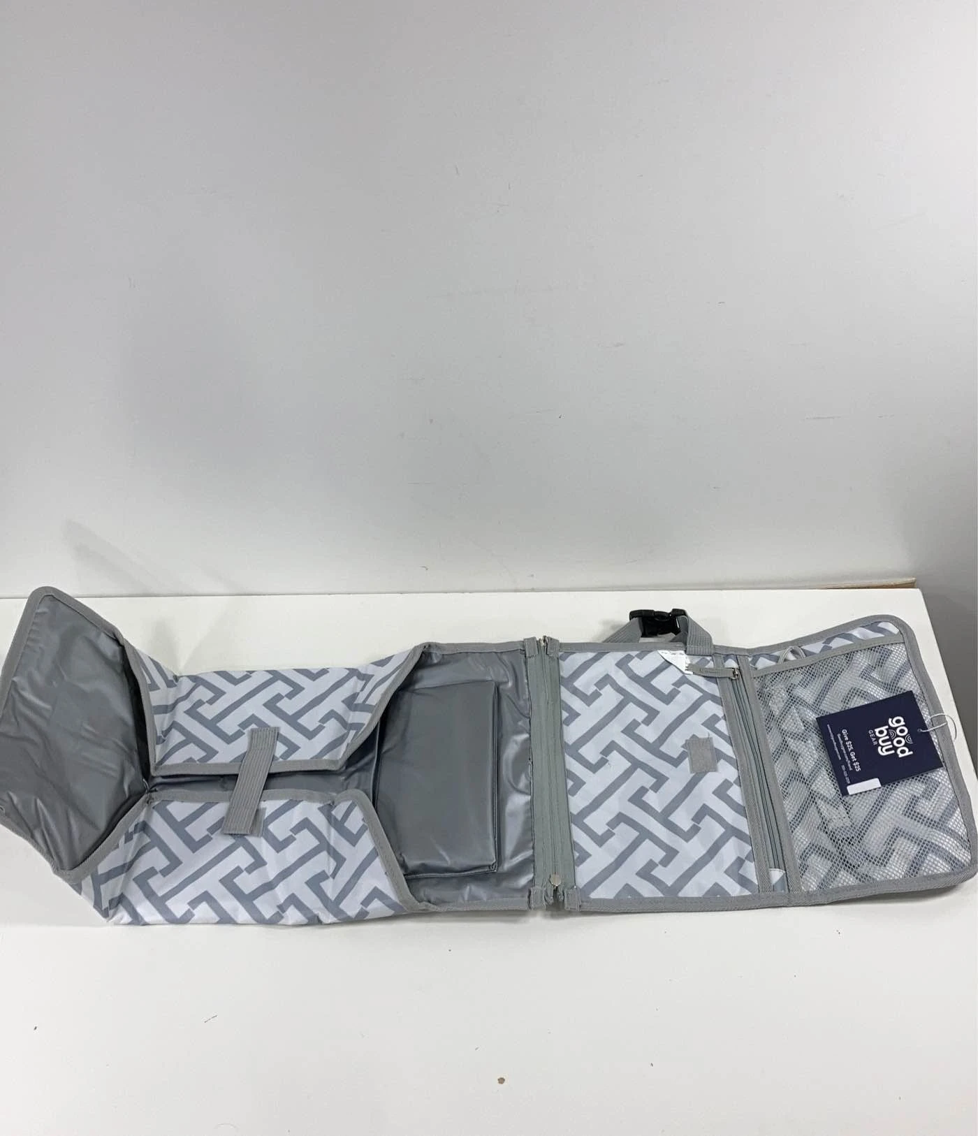 “This portable changing station is easy to pop in a diaper bag or carry around your wrist for diaper changes on the go. Features a wipe clean changing surface and plenty of handy pockets to store all the essentials.”