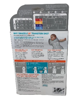 “Quickly and easily create a comfortable cocoon around your baby. This is an ideal transition swaddle for babies who are starting to roll over. The shoulders are removable allowing you to first remove one and then the other as your baby learns to sleep with her arms free. Converts to a snug sleep bag for long term use.”