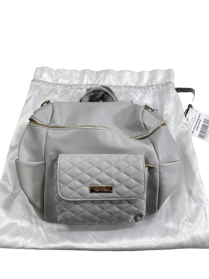 “Finding a stylish diaper bag can be daunting, but look no further because this one is it! Made with vegan leather and gold enameling, this bag is designed to hold it all. It features multiple interior pockets, three exterior pockets, stroller clips, and a matching changing pad. This luxurious styled bag can be used as a backpack, shoulder bag, or as a cross-body.”