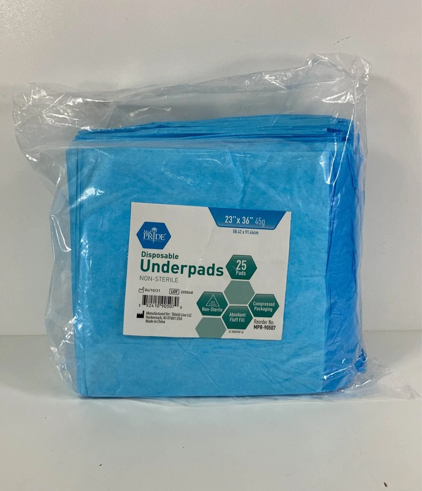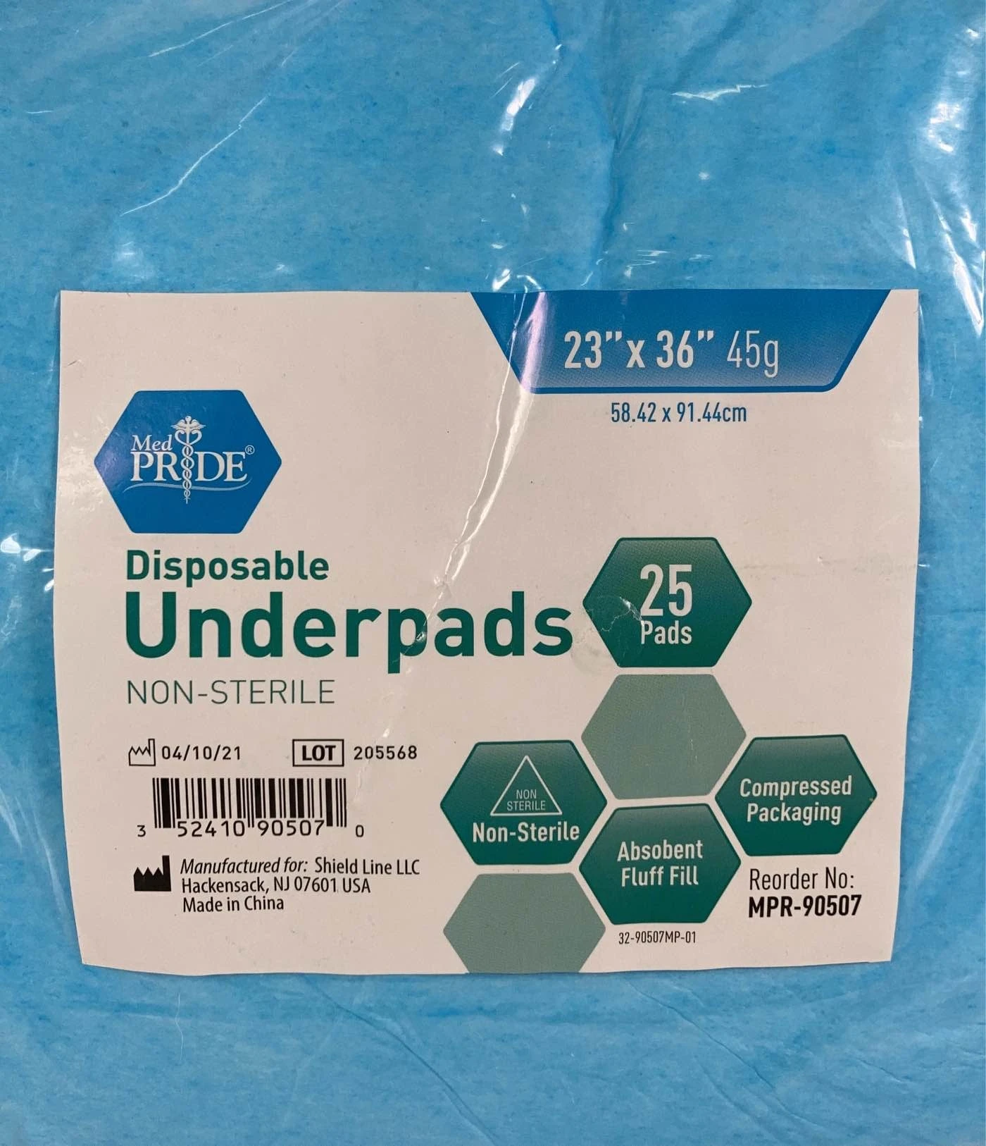 Medpride Disposable Underpads 23” X 36” (25-Count) Incontinence Pads, Chux, Bed Covers, Puppy Training | Thick, Super Absorbent Protection for Kids, Adults, Elderly | Liquid, Urine, Accidents
