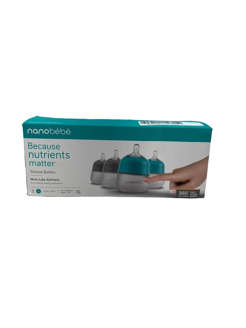 Nanobébé Flexy Silicone Baby Bottle, Anti-Colic, Natural Feel, Non-Collapsing Nipple, Non-Tip Stable Base, Easy to Clean, 3-Pack, Gray, 9oz