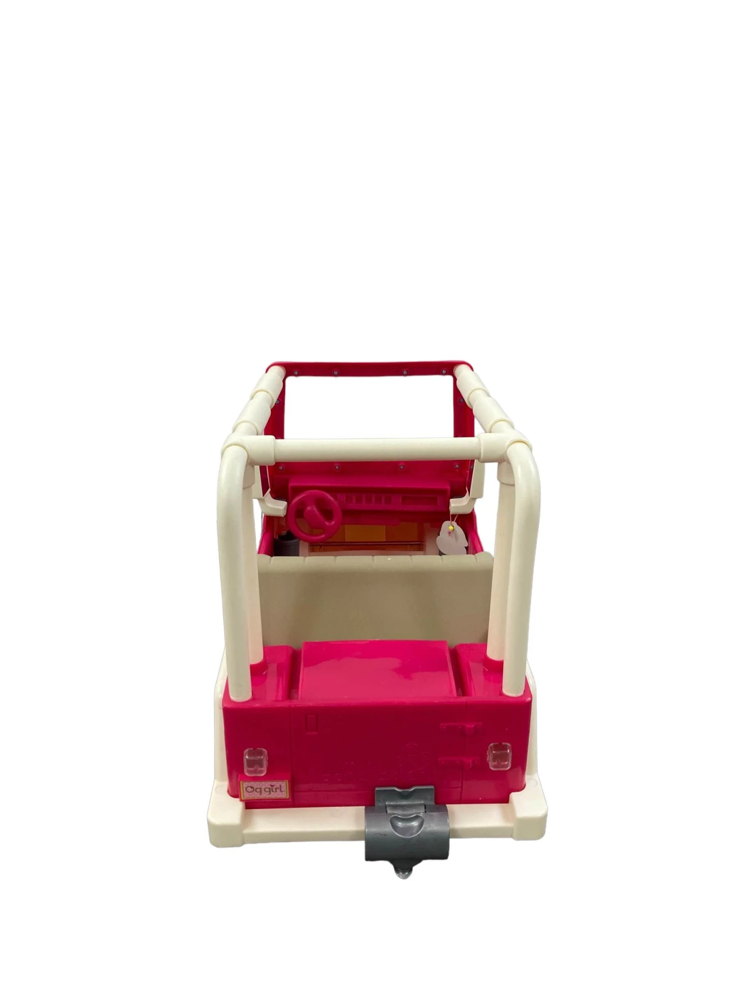 “Your child will enjoy driving their dolls around in this super cute 4×4 vehicle. This little vehicle can also connect to the Our Generation horse trailer or RV camper(sold separately).”