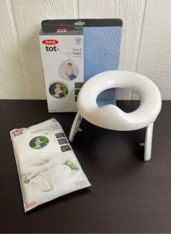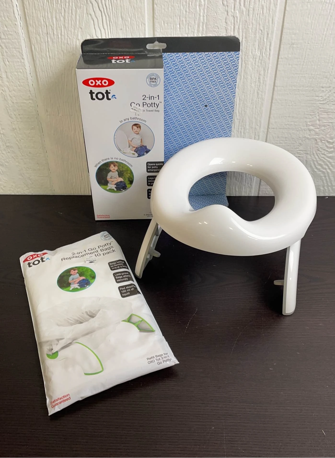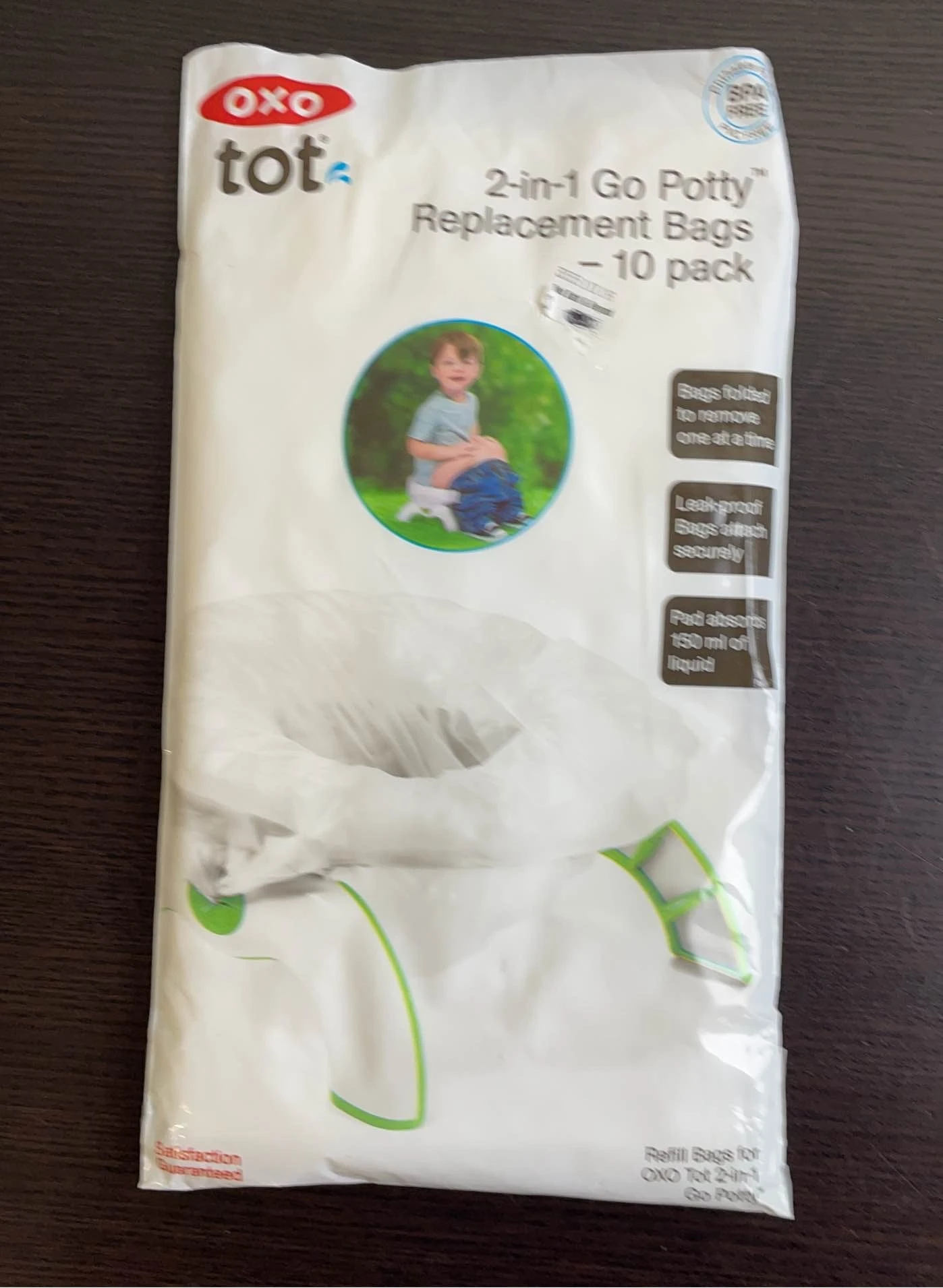 “This is the perfect training potty for travel! It is designed for standalone use with disposable bags, or it can be used as a potty seat on toilets. It is the perfect size for little bottoms and the shield prevents splatter. It’s easy to clean, and the legs fold in so you can fit the potty in the included travel bag.”