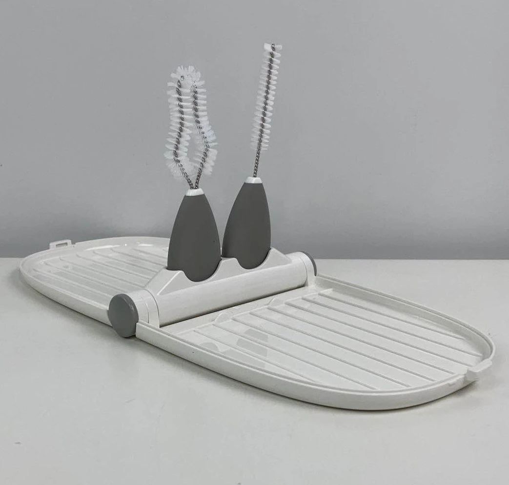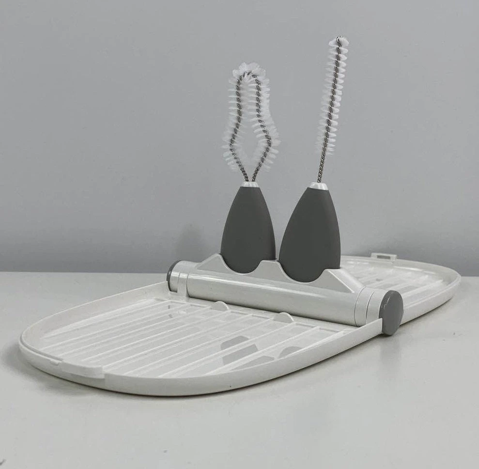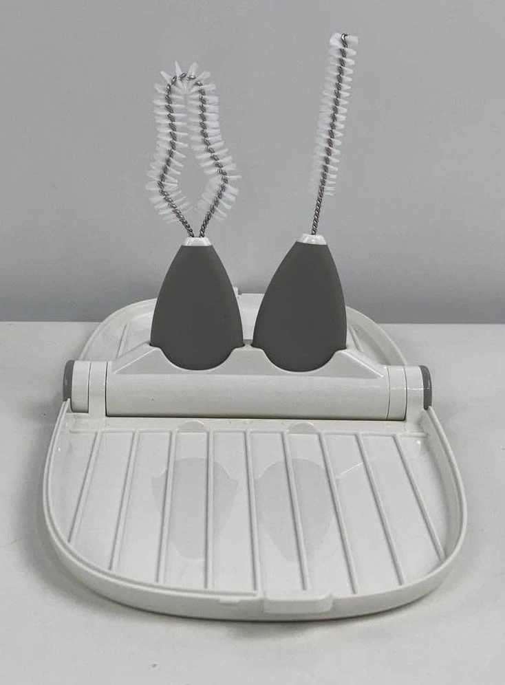 OXO Tot Breast Pump Parts Compact Drying Rack with Detail Brushes, Gray