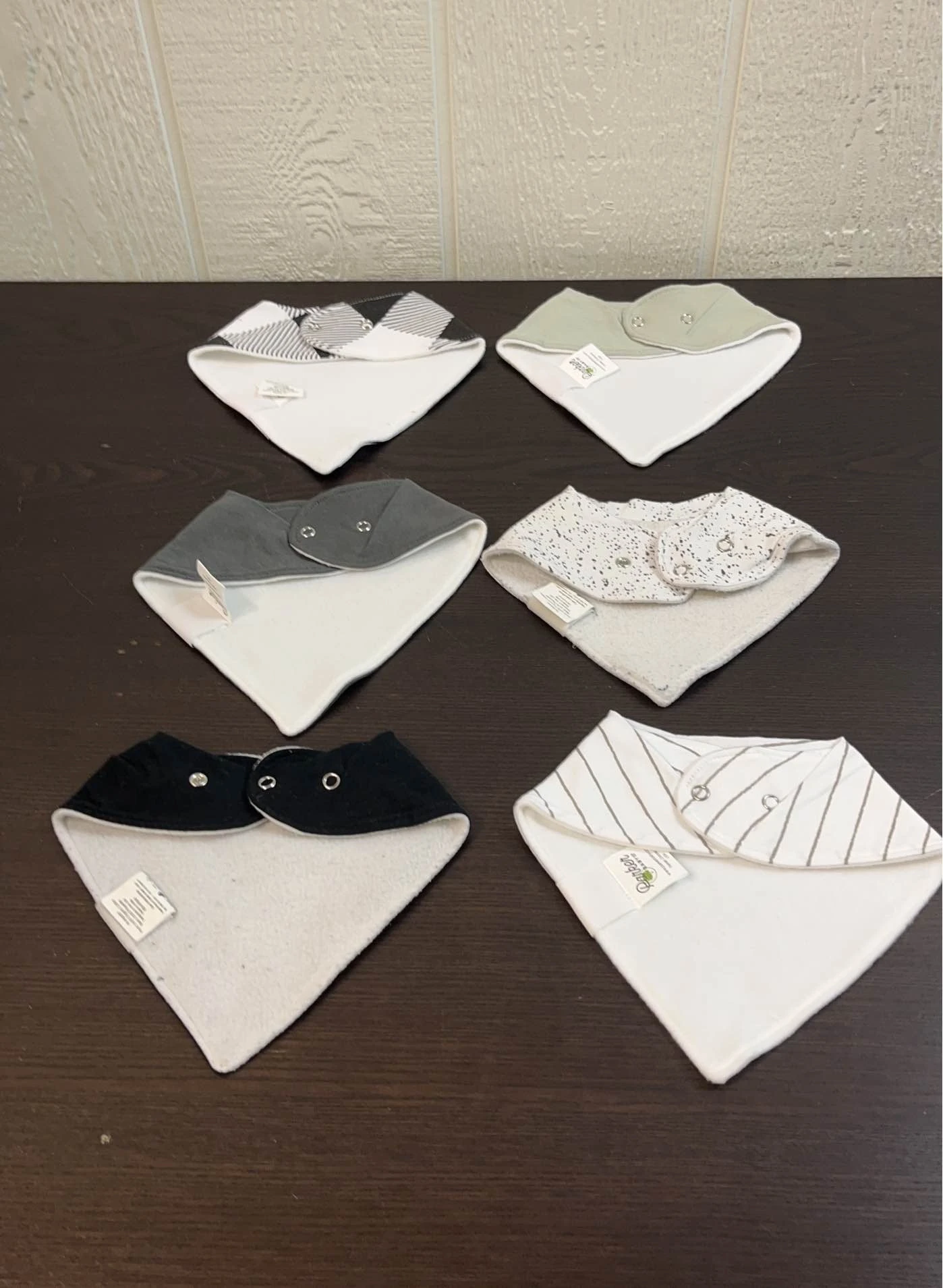 “You can never have to many bibs, this set is stylish and cute for your little one. This set is made of organic cotton and polyester. “