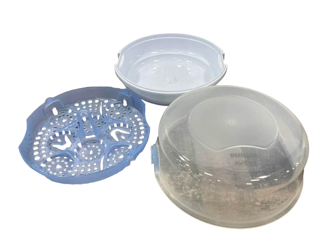“Sterilize up to 6 bottles in only 2 minutes with this convenient BPA-free device. Also great for sterilizing breast pump components and other items.”