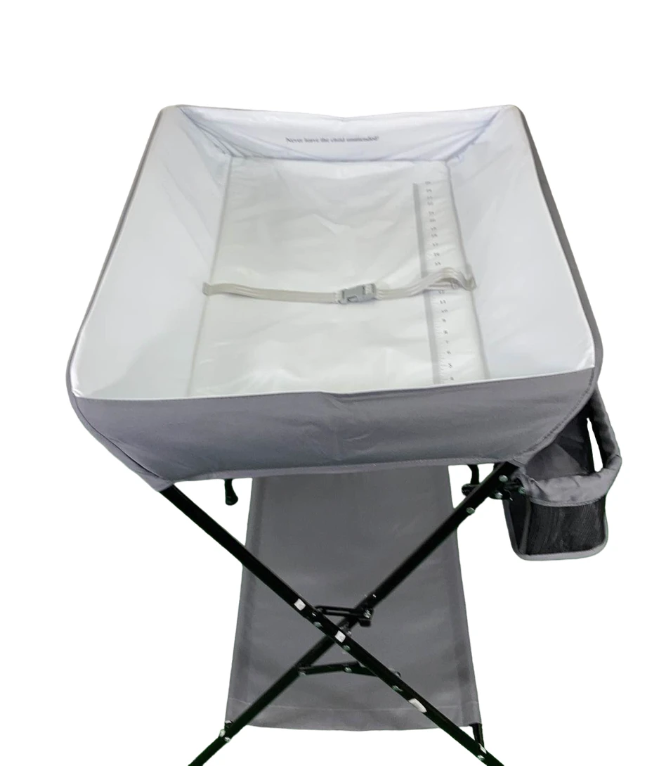 “This folding changing table feature a side storage basket, storage underneath, an easy-wipe surface and a ruler on the side to measure your baby’s height!”