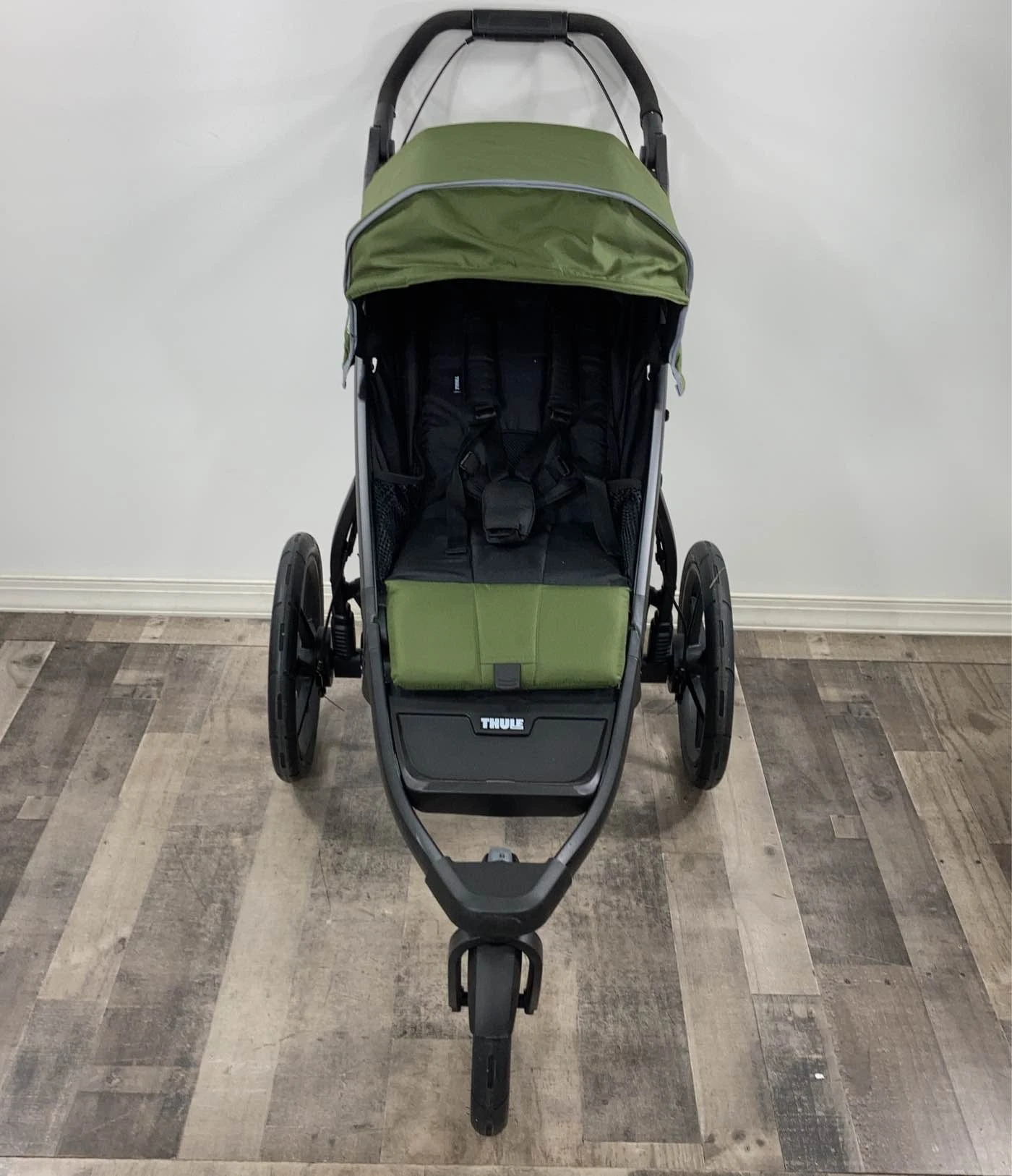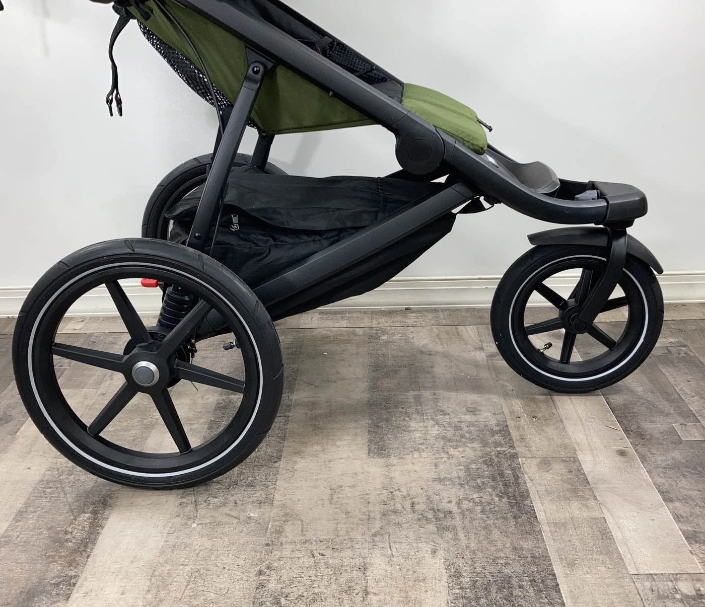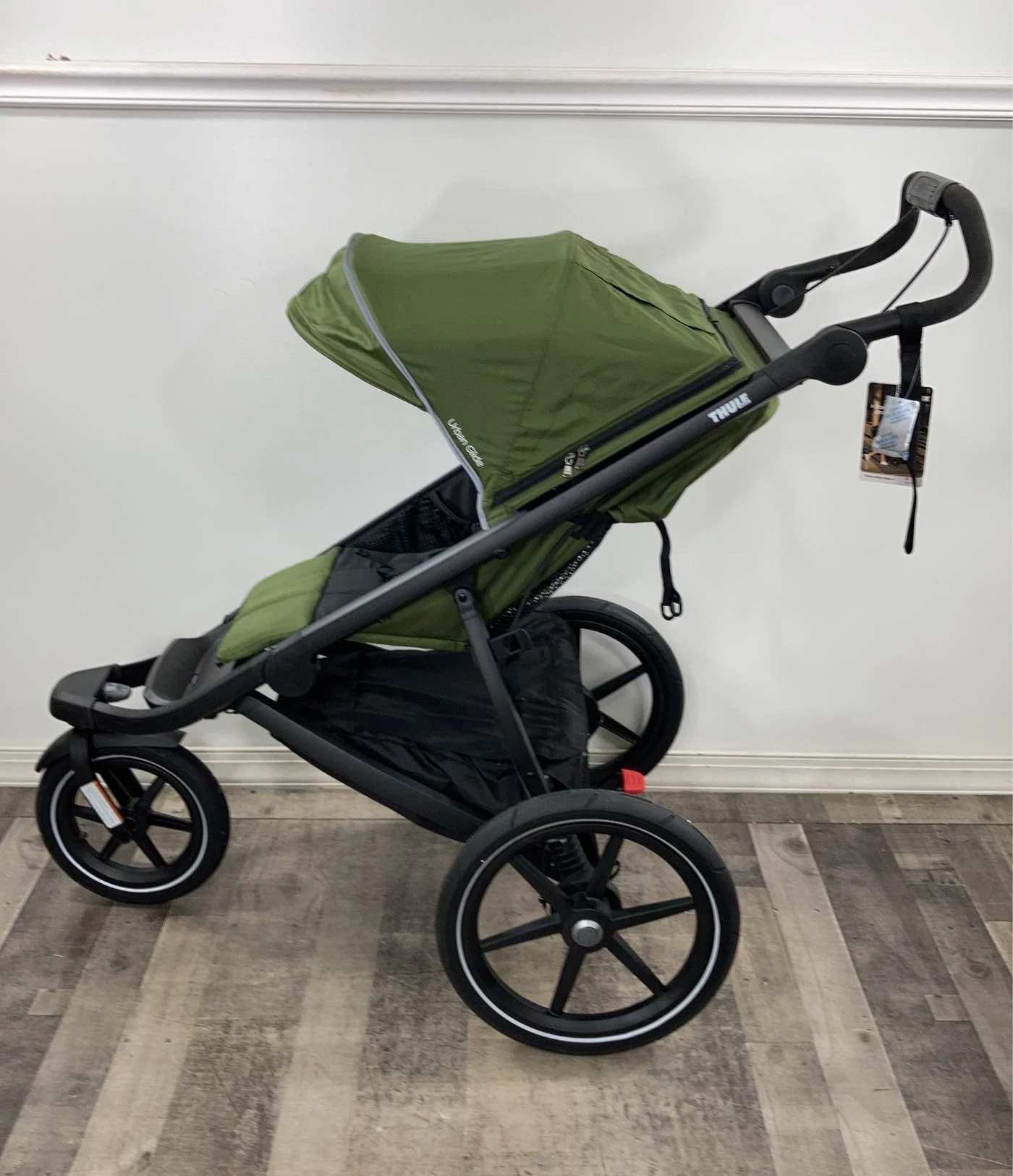 “Whether jogging your favorite trail or navigating urban sidewalks, this well-designed stroller has you covered! The swivel front wheel can lock forward, if desired, for more stability when jogging. Features an adjustable handlebar, rear suspension, generous sun canopy, fully reclining seat, easy one-hand fold, a large covered storage basket with zippered pocket, and reflective details for better visibility.”