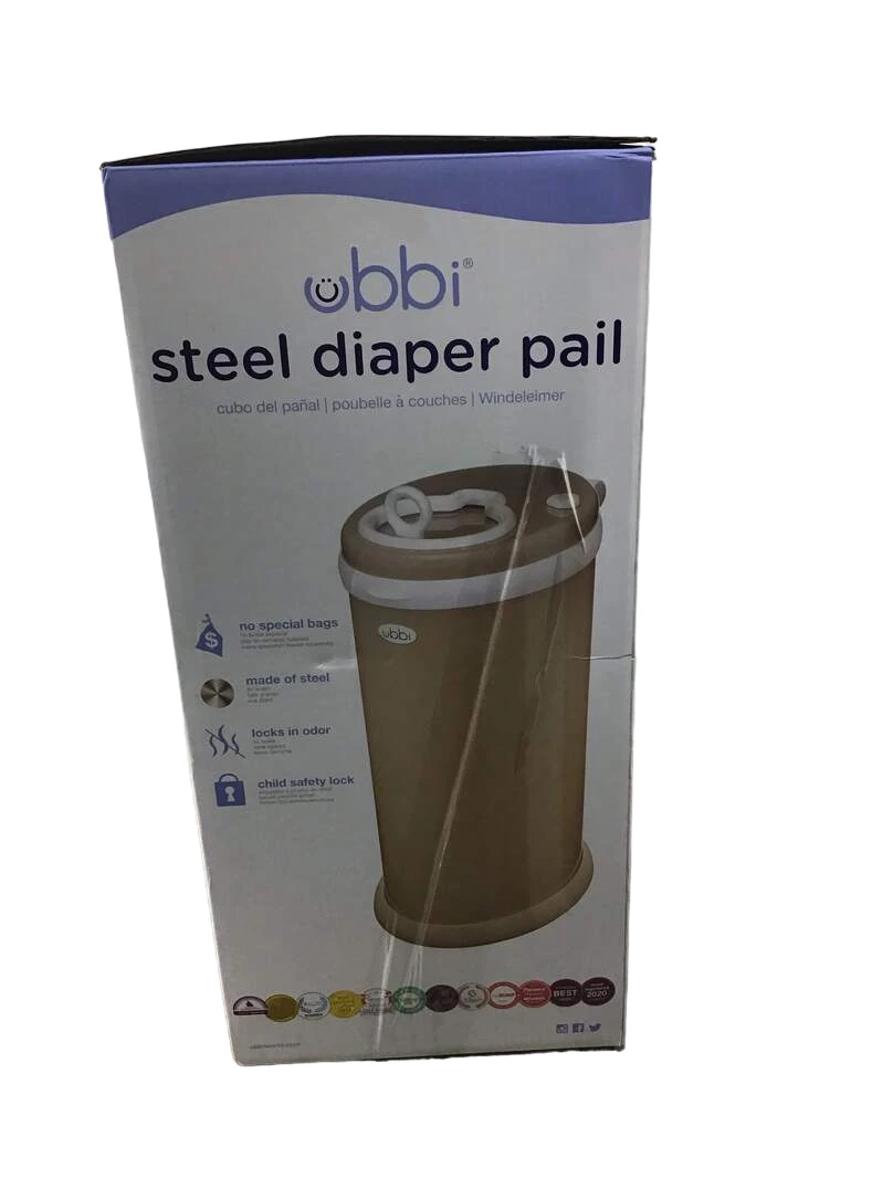 “Lock diaper odors inside this innovative pail and keep your room smelling fresh. The steel body, rubber seals, and sliding lid work together to create an amazingly effective odor control system. No special bags required.”