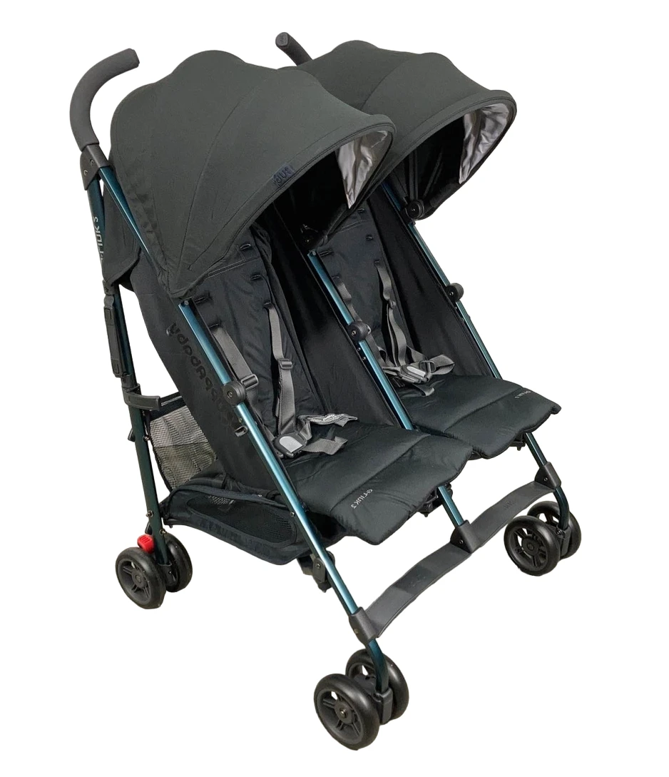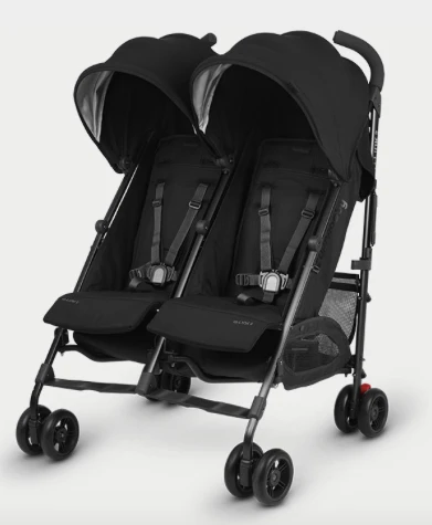 “This updated double stroller from UPPAbaby manages to be both compact and feature-rich at the same time, resulting in the most luxurious and convenient umbrella stroller you are likely to find. It is incredibly lightweight and easy to maneuver. It features a one-handed seat recline, extendable UPF 50+ sunshades, comfortable seat pads that are removable and machine washable, tall handlebars, a large storage basket, an easy folding mechanism, and a convenient carry strap, making it perfect for travel. Suitable for children from 3 months through 55lbs per seat. This updated version features a parent cup holder, a smaller frame, and a slightly larger under-basket.”