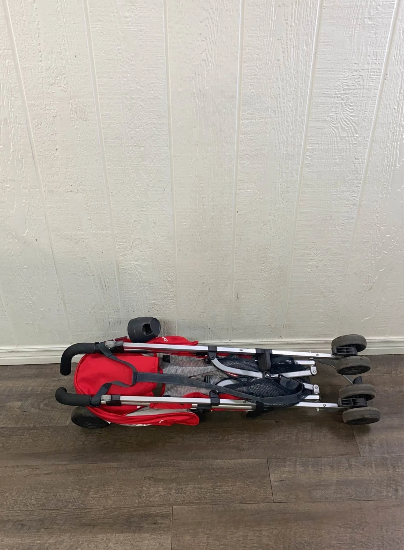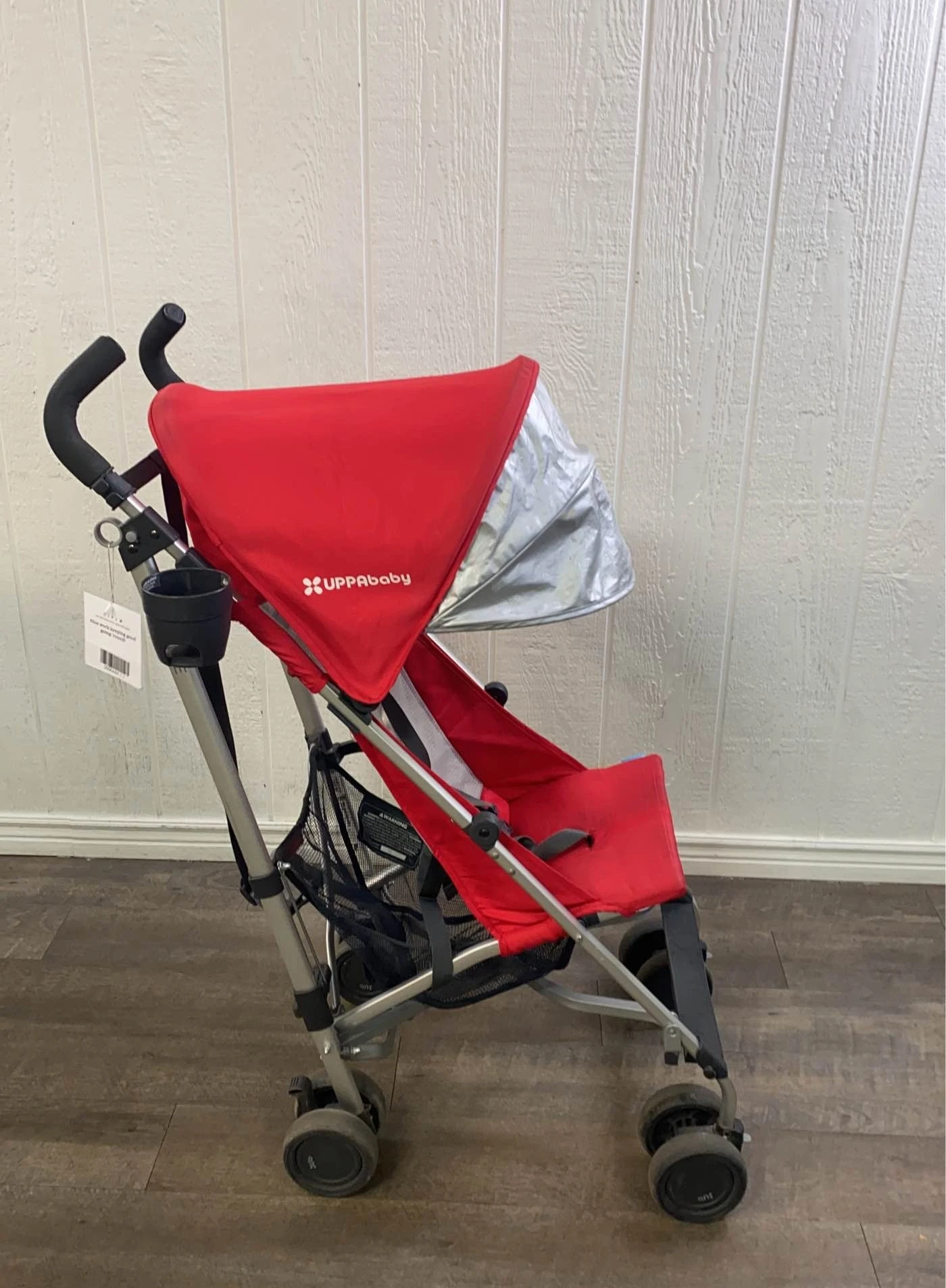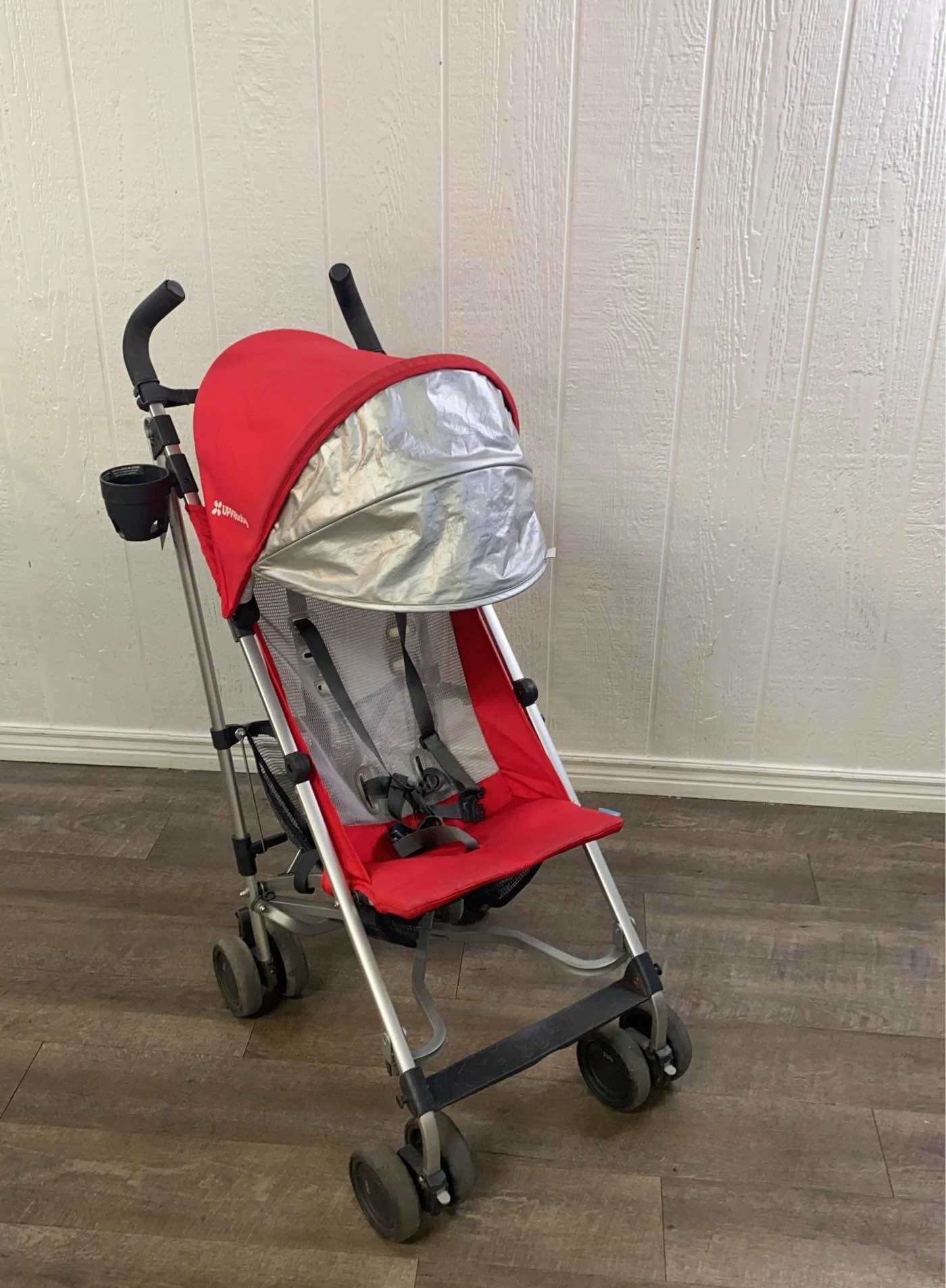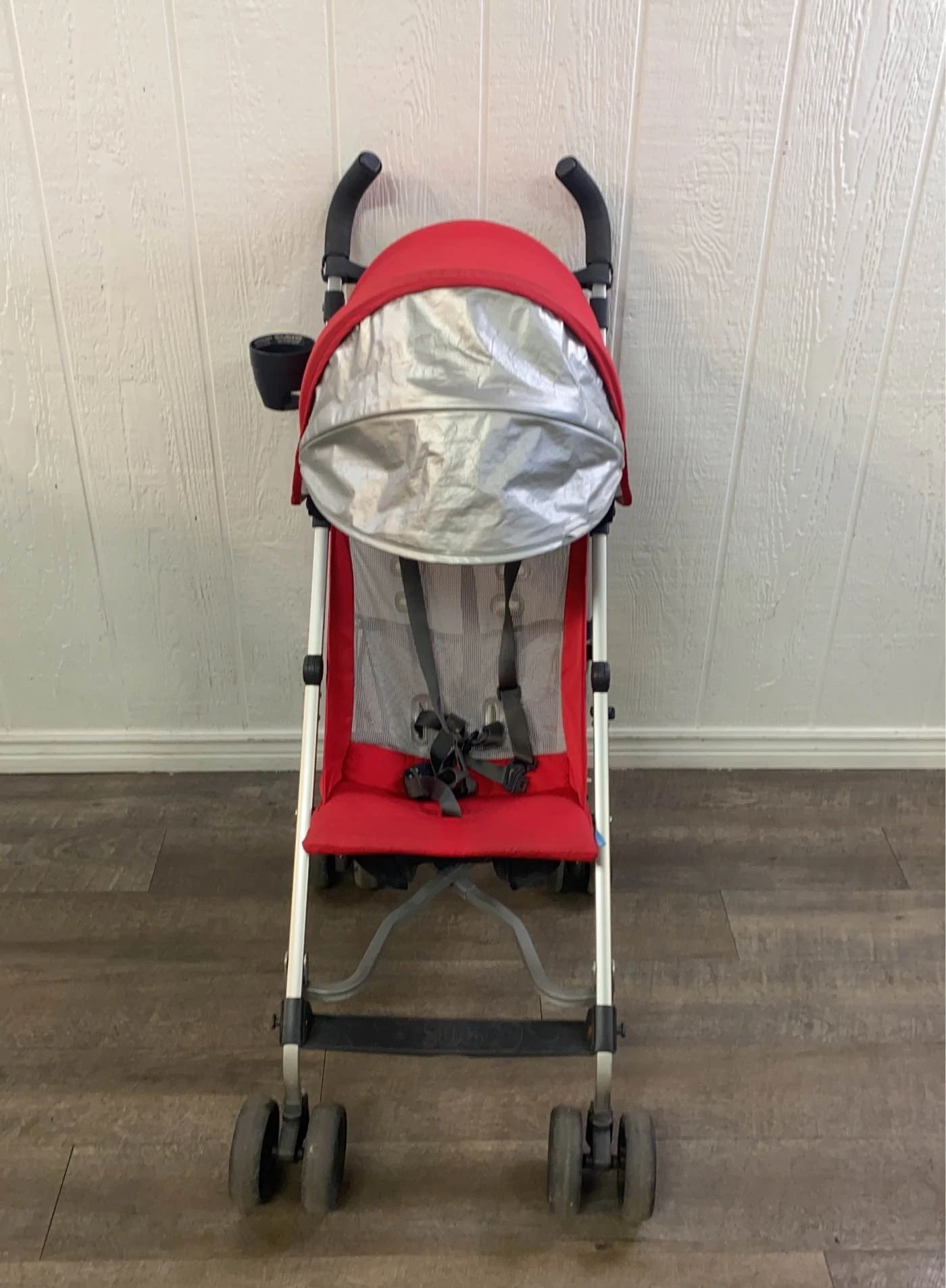“The name speaks for itself. The G-LITE is so lightweight and portable that it will surely become your favorite ‘get around town’ accessory. You can pick up the G-LITE with one hand using its convenient carry strap. Features an extra large sunshade. Easy to fold and throw in any trunk. Push one-handed to make shopping a breeze.”